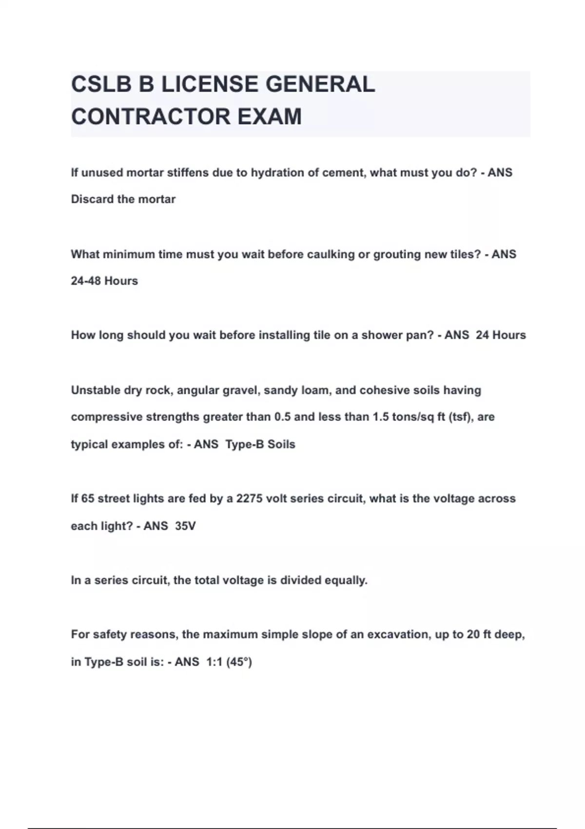 CSLB B LICENSE GENERAL CONTRACTOR EXAM QUESTIONS & ANSWERS 2024 ( A+ GRADED 100% VERIFIED)