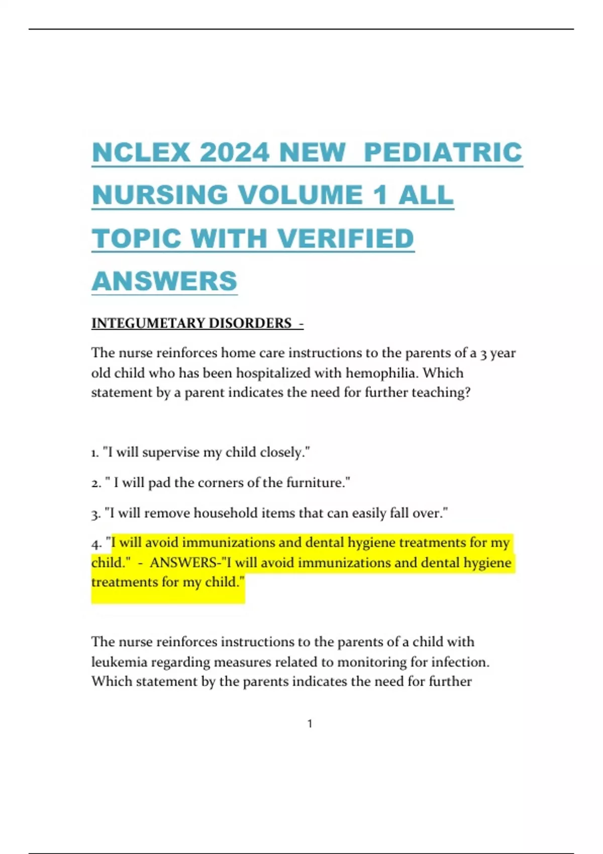 NCLEX 2024 NEW PEDIATRIC NURSING VOLUME 1 WITH VERIFIED ANSWERS NCLEX 2024 NEW PEDIATRIC NURSING VOLUME 1 WITH VERIFIED ANSWERS NCLEX 2024 NEW PEDIATRIC NURSING VOLUME 1 WITH VERIFIED ANSWERS NCLEX 2024 NEW PEDIATRIC NURSING VOLUME 1 WITH VERIFIED ANSWERS