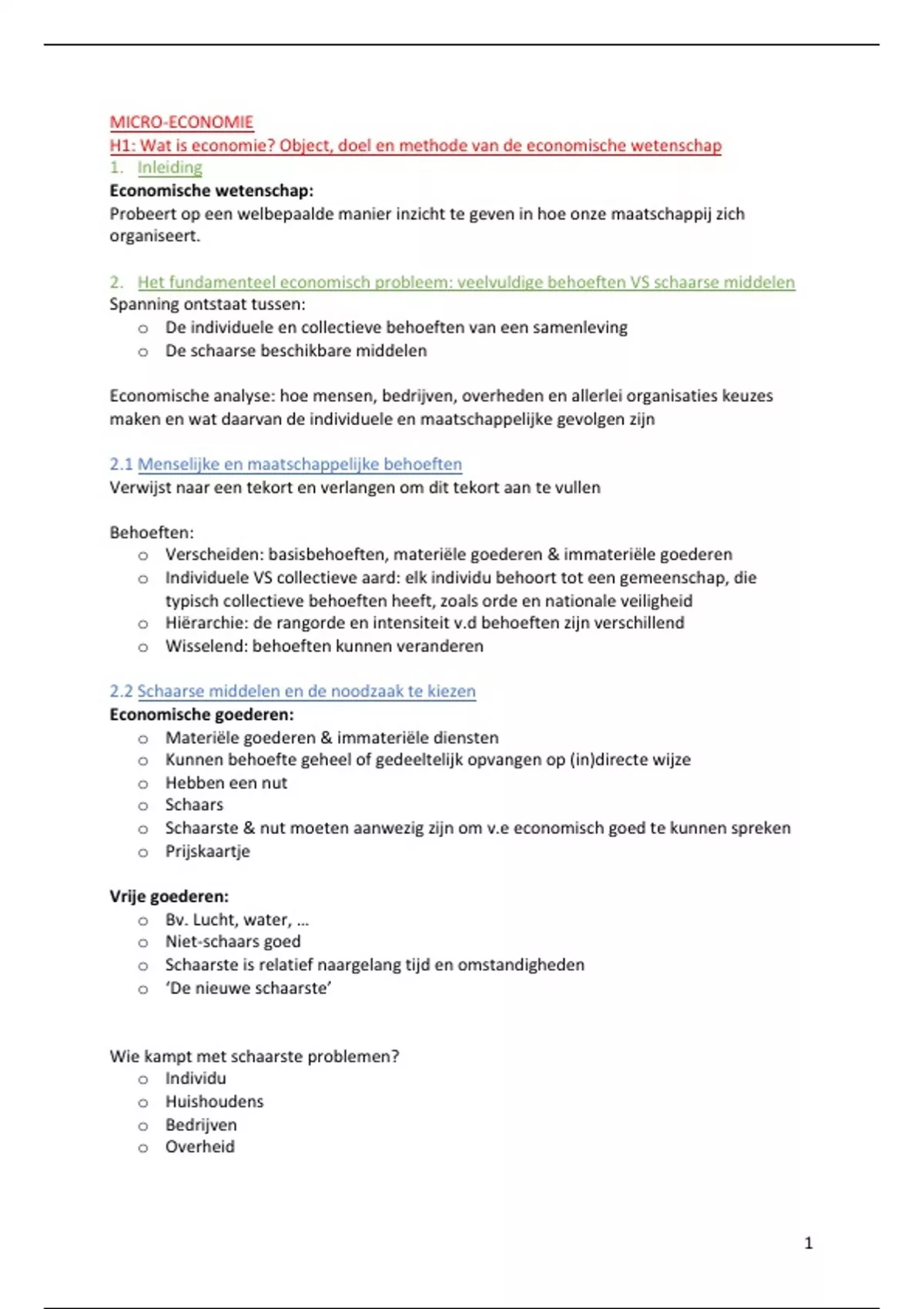 H1: Wat is economie? Object, doel en methode van de economische wetenschap