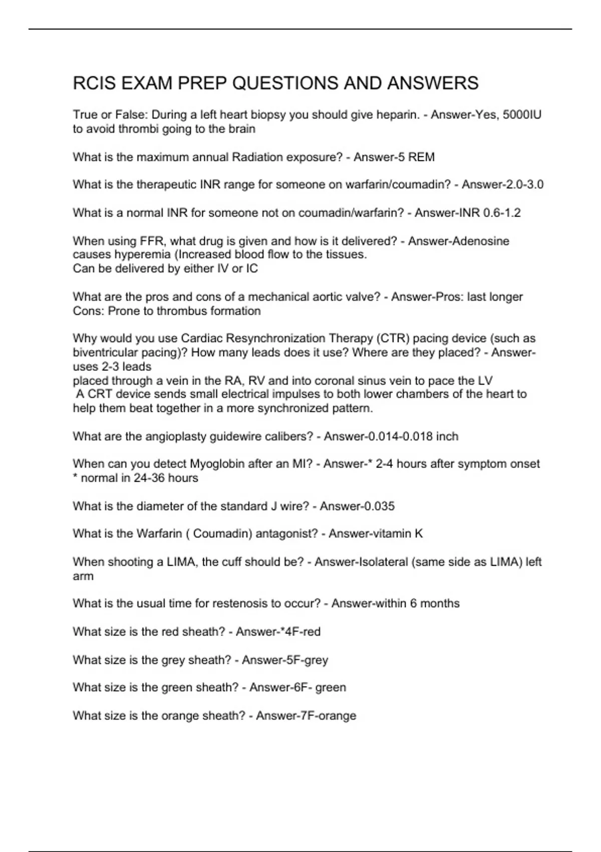 RCIS EXAM PREP QUESTIONS AND ANSWERS