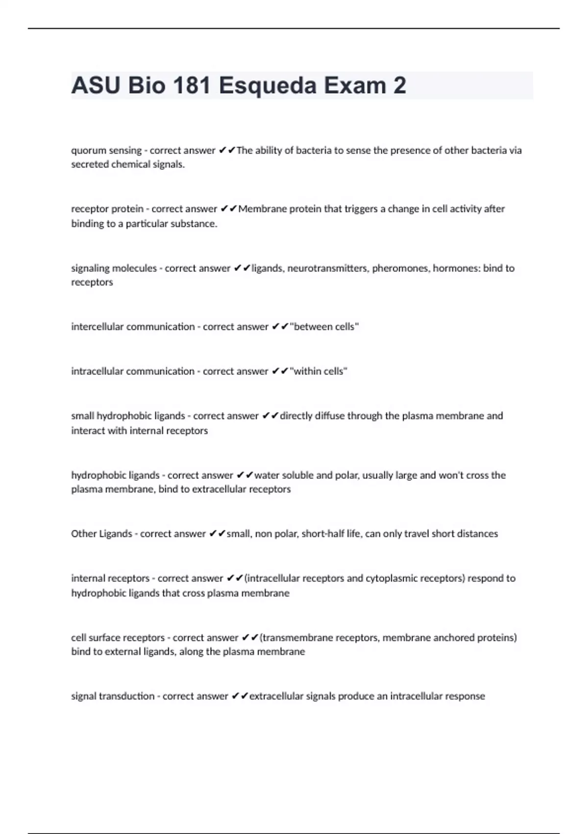 signaling molecules - correct answer ✔✔ligands, neurotransmitters, pheromones, hormones: bind to