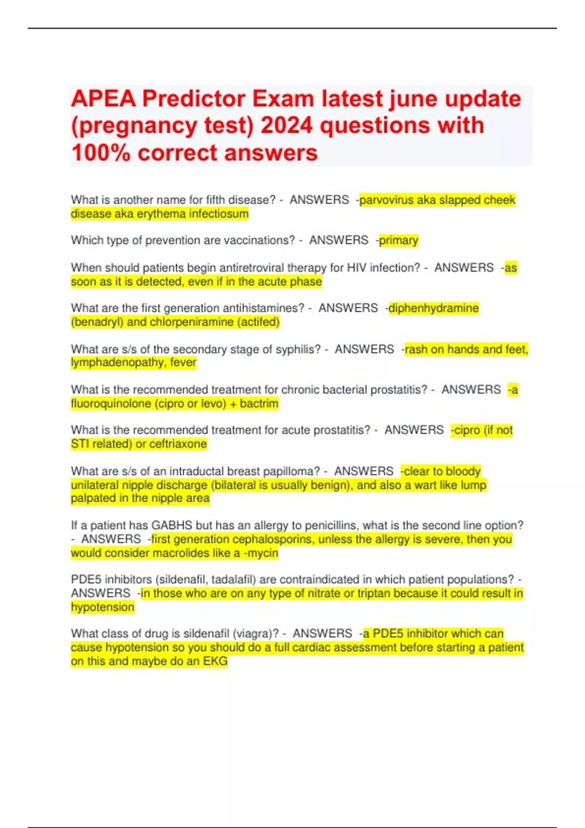 APEA Predictor Exam latest june update (pregnancy test) 2024 questions with 100% correct answers