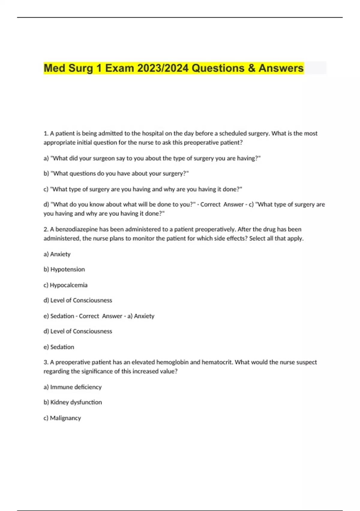 Med Surg 1 Exam Questions & Answers.