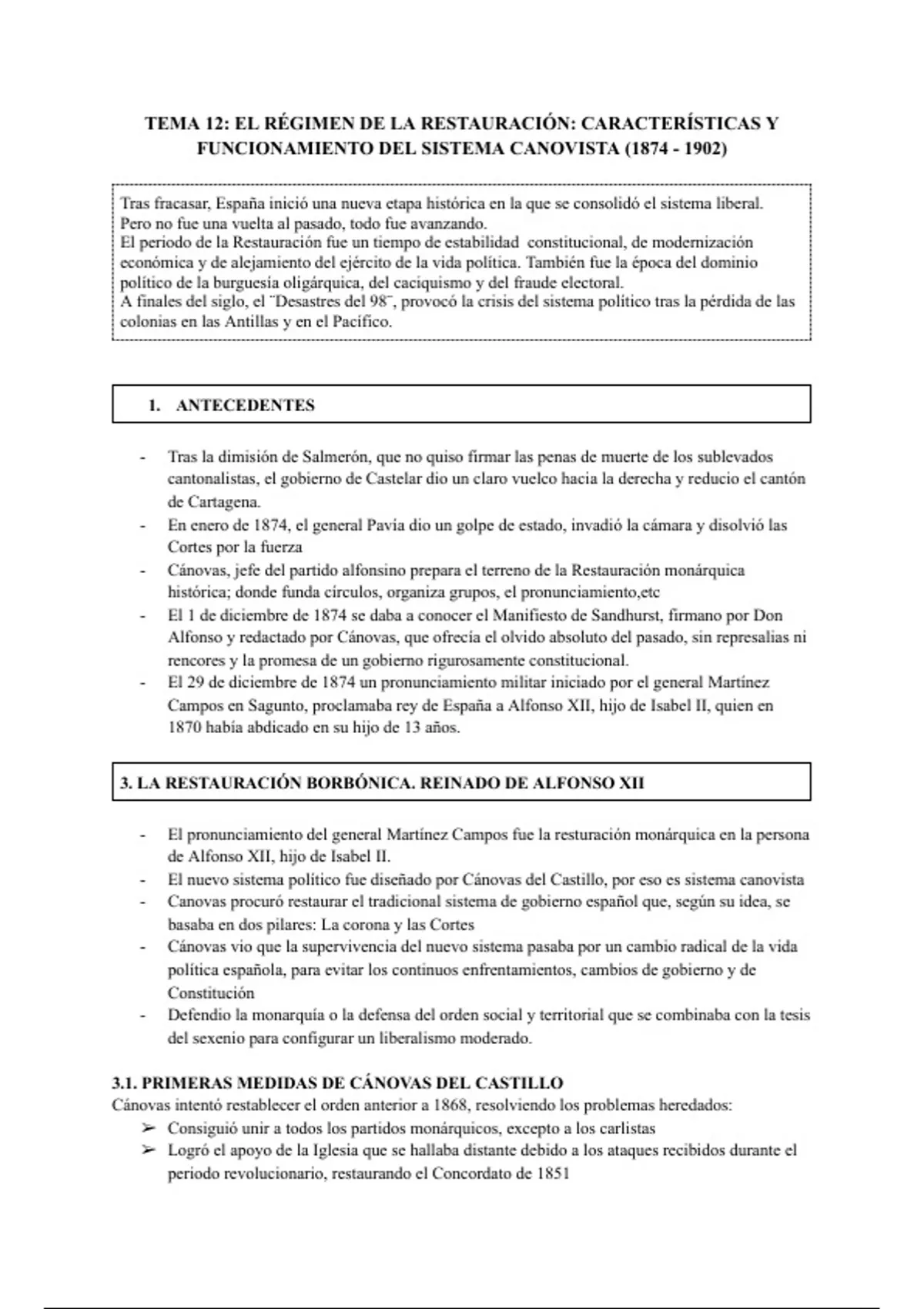 3. LA RESTAURACIÓN BORBÓNICA. REINADO DE ALFONSO XII