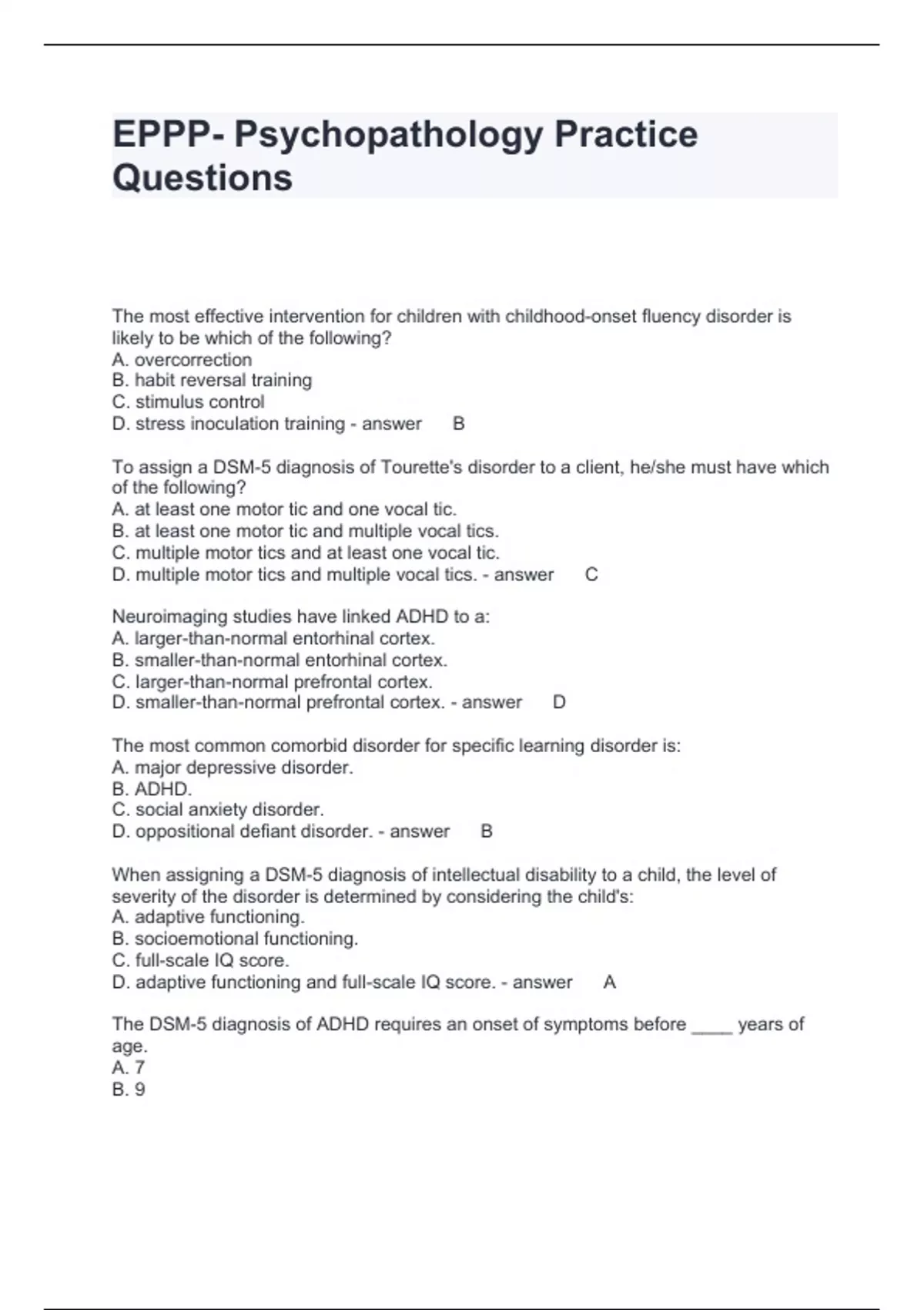 eppp psychopathology practice questions