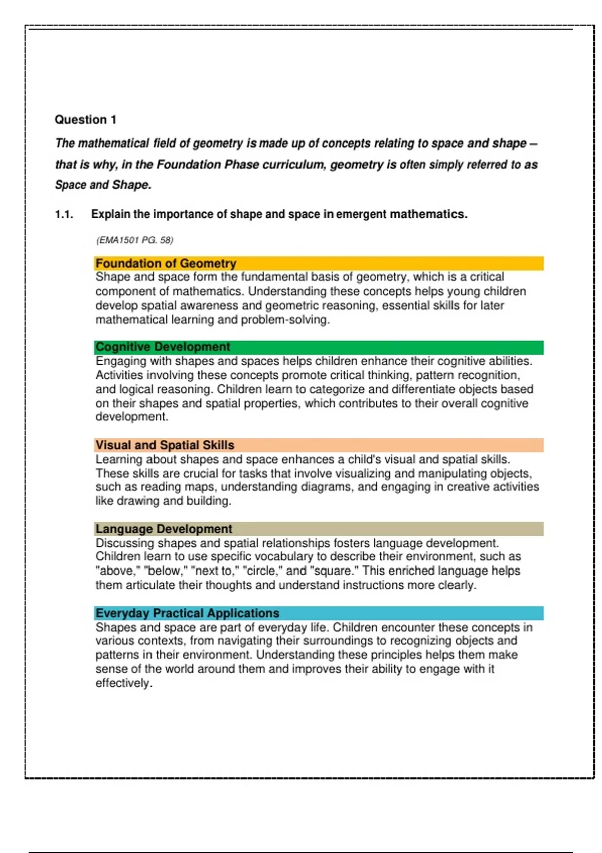 1.1. Explain the importance of shape and space in emergent mathematics.