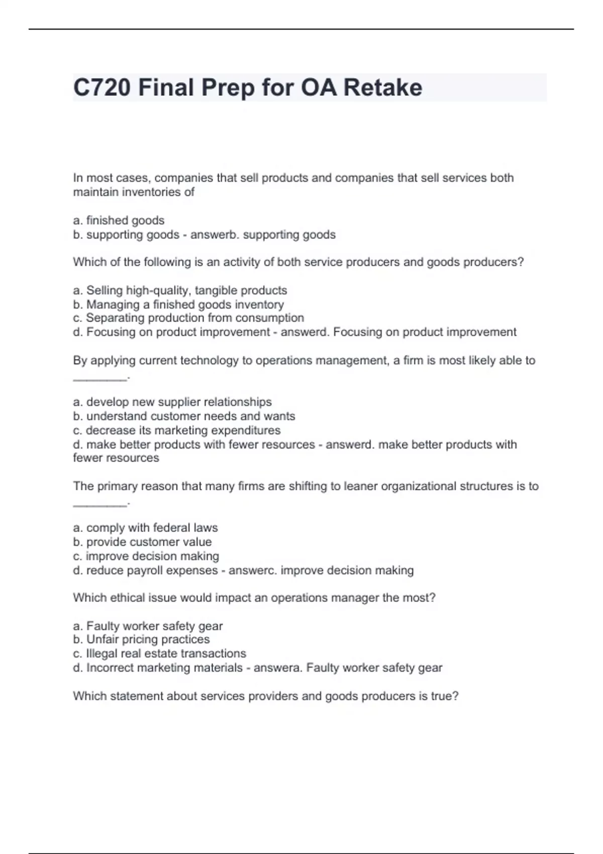 C720 Final Prep for OA Retake Questions and Answers Rated A+