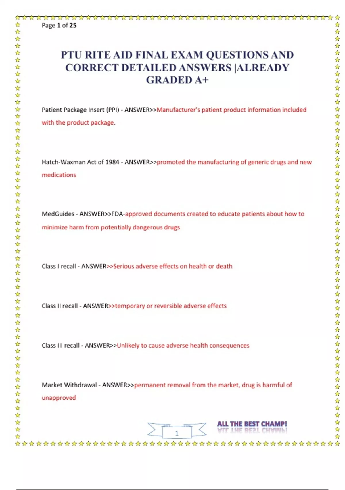 PTU RITE AID FINAL EXAM QUESTIONS AND CORRECT DETAILED ANSWERS |ALREADY GRADED A+