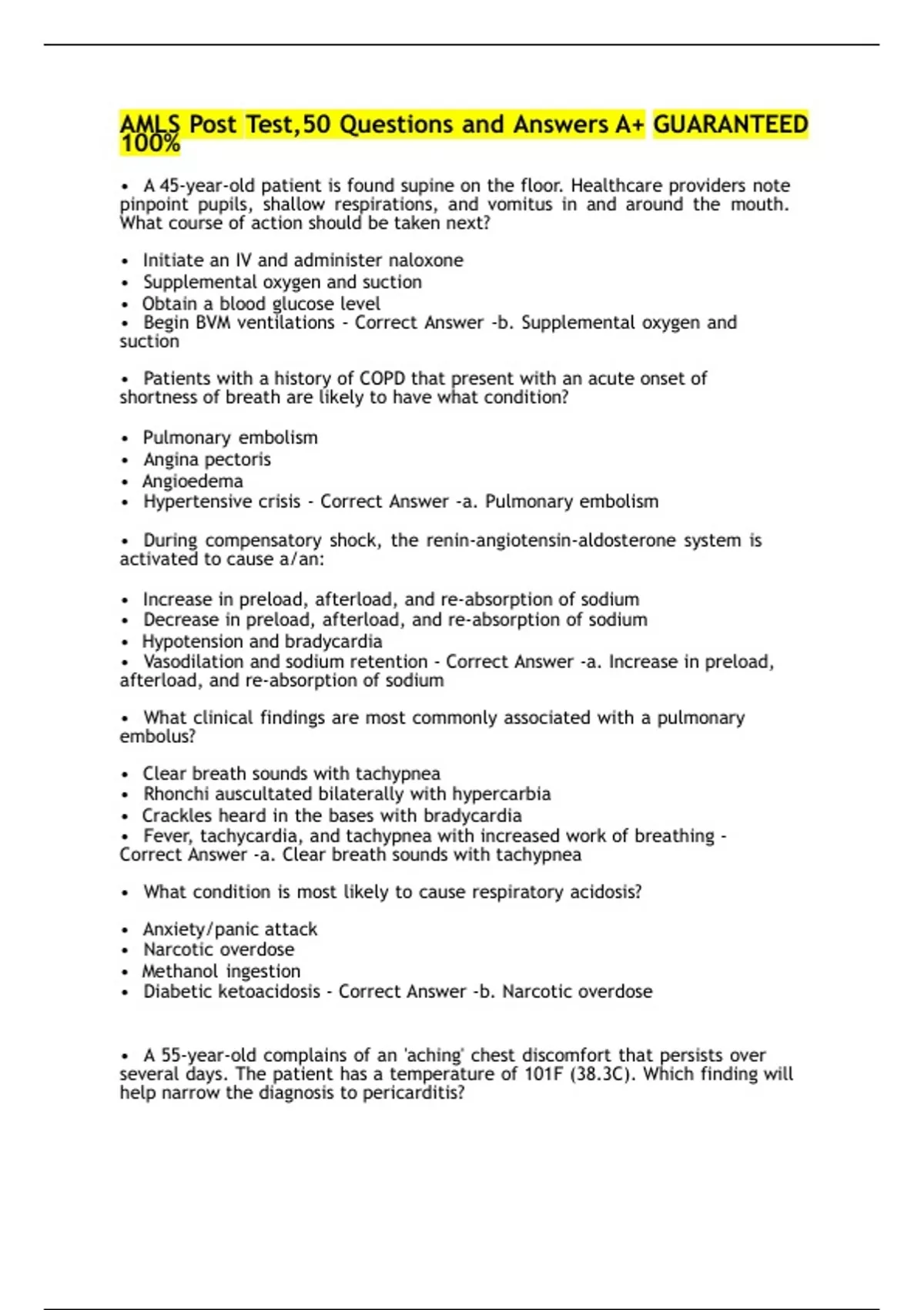 AMLS Post Test,50 Questions and Answers A+ GUARANTEED 100%