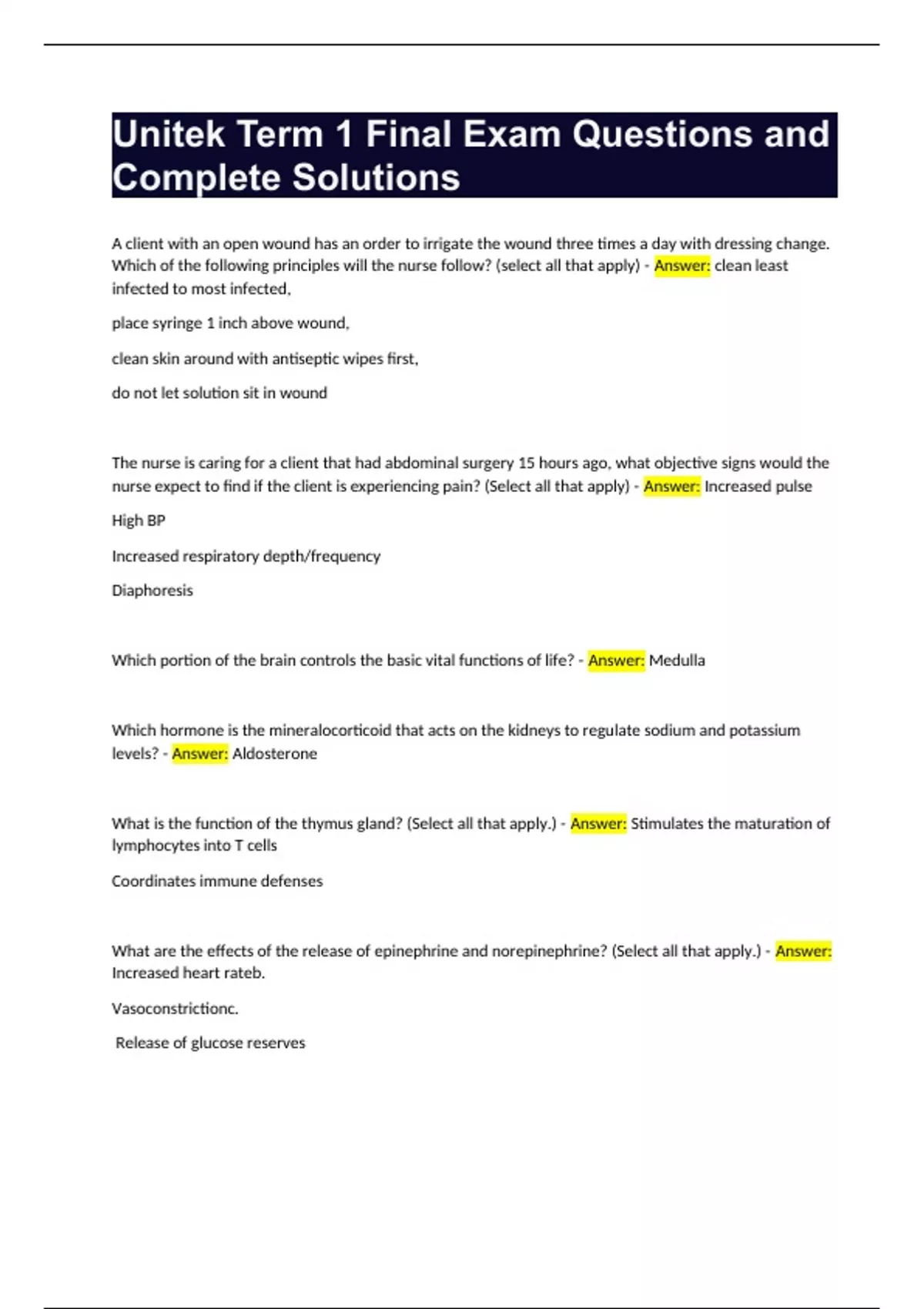 unitek term 1 final exam questions and complete so