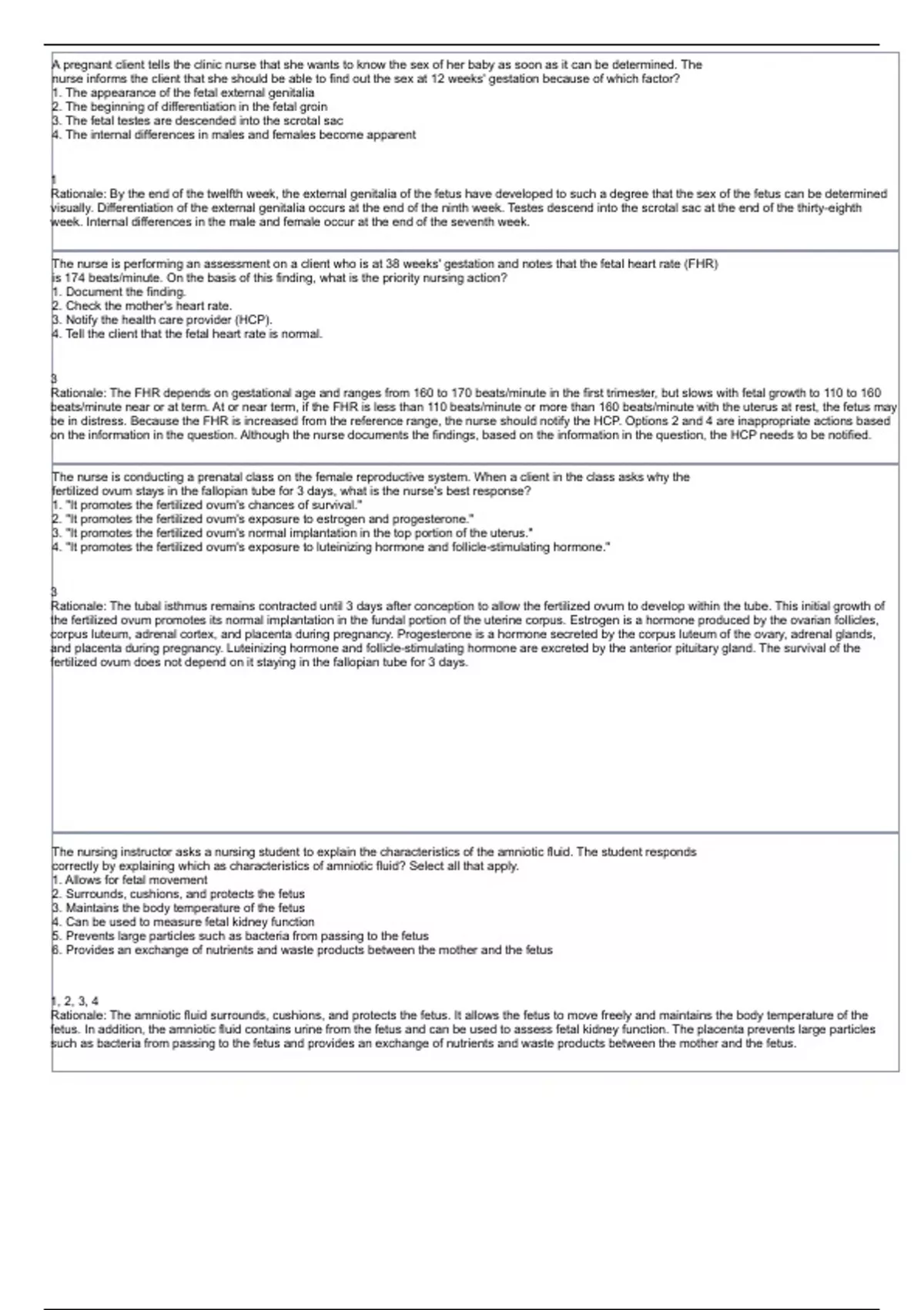 NCLEX FEMALE REPRODUCTIVE SYSTEM TO FETAL DEVELOPMENT QUESTIONS WITH ANSWERS 100% CORRECT