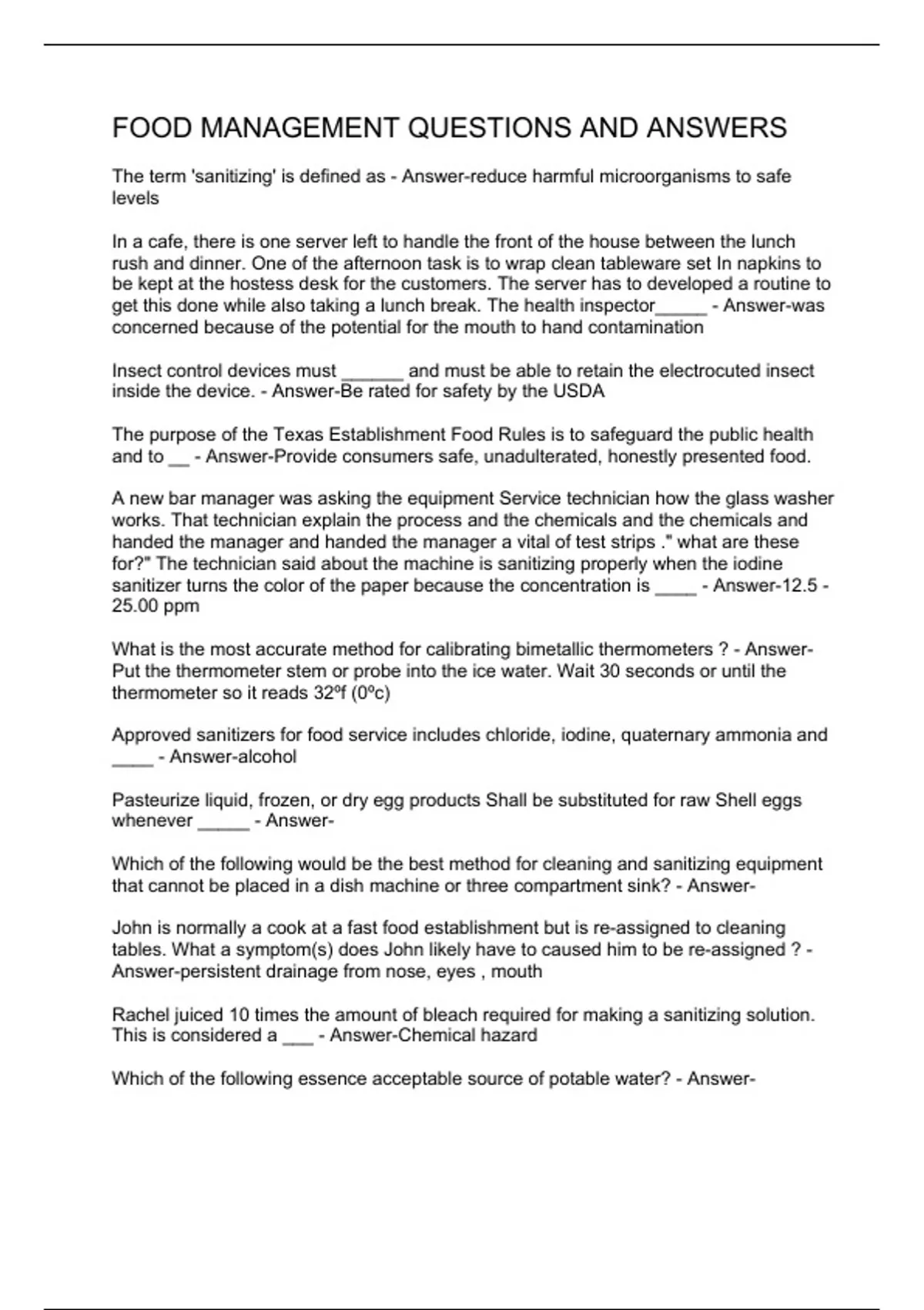 FOOD MANAGEMENT QUESTIONS AND ANSWERS