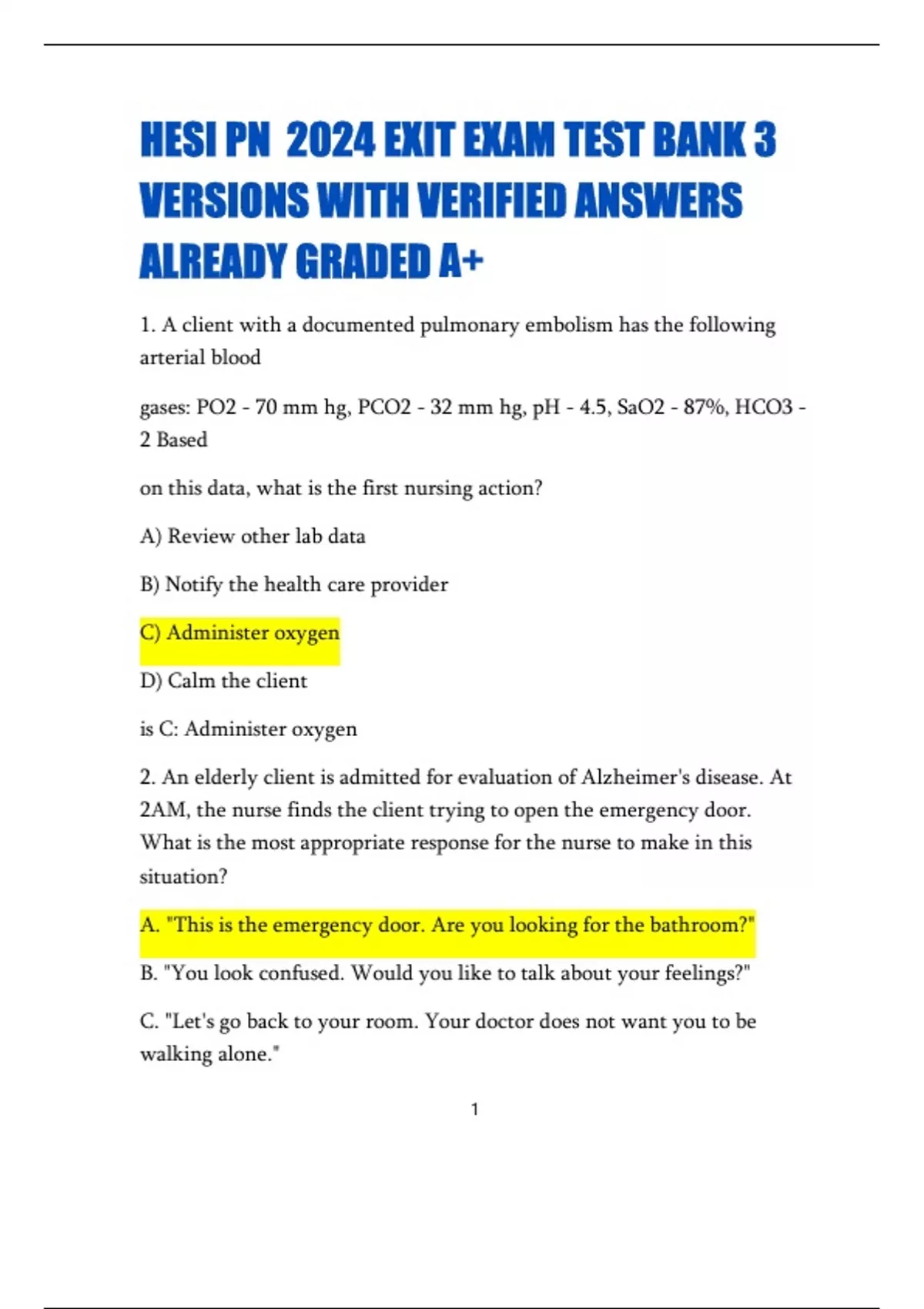 HESI PN 2024 EXIT EXAM TEST BANK 3 VERSIONS WITH VERIFIED ANSWERS ALREADY GRADED A+HESI PN 2024 EXIT EXAM TEST BANK 3 VERSIONS WITH VERIFIED ANSWERS ALREADY GRADED A+HESI PN 2024 EXIT EXAM TEST BANK 3 VERSIONS WITH VERIFIED ANSWERS ALREADY GRADED A+