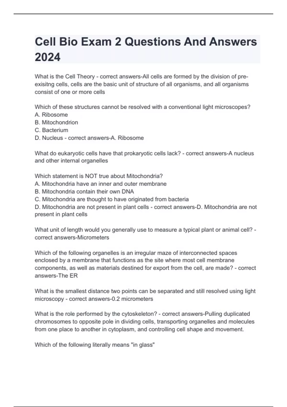 cell bio exam 2 questions and answers 2024