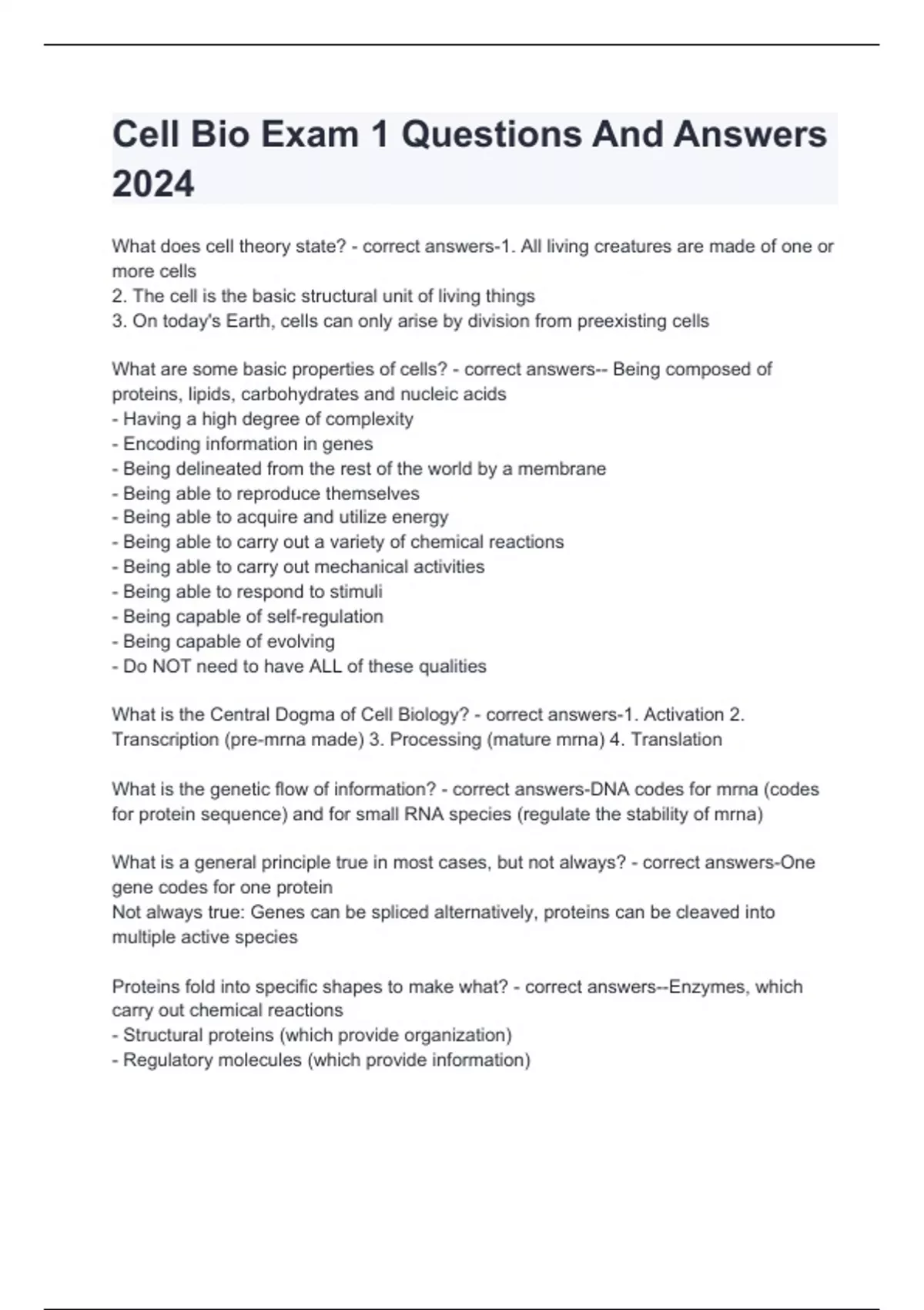 Cell Bio Exam 1 Questions And Answers 2024