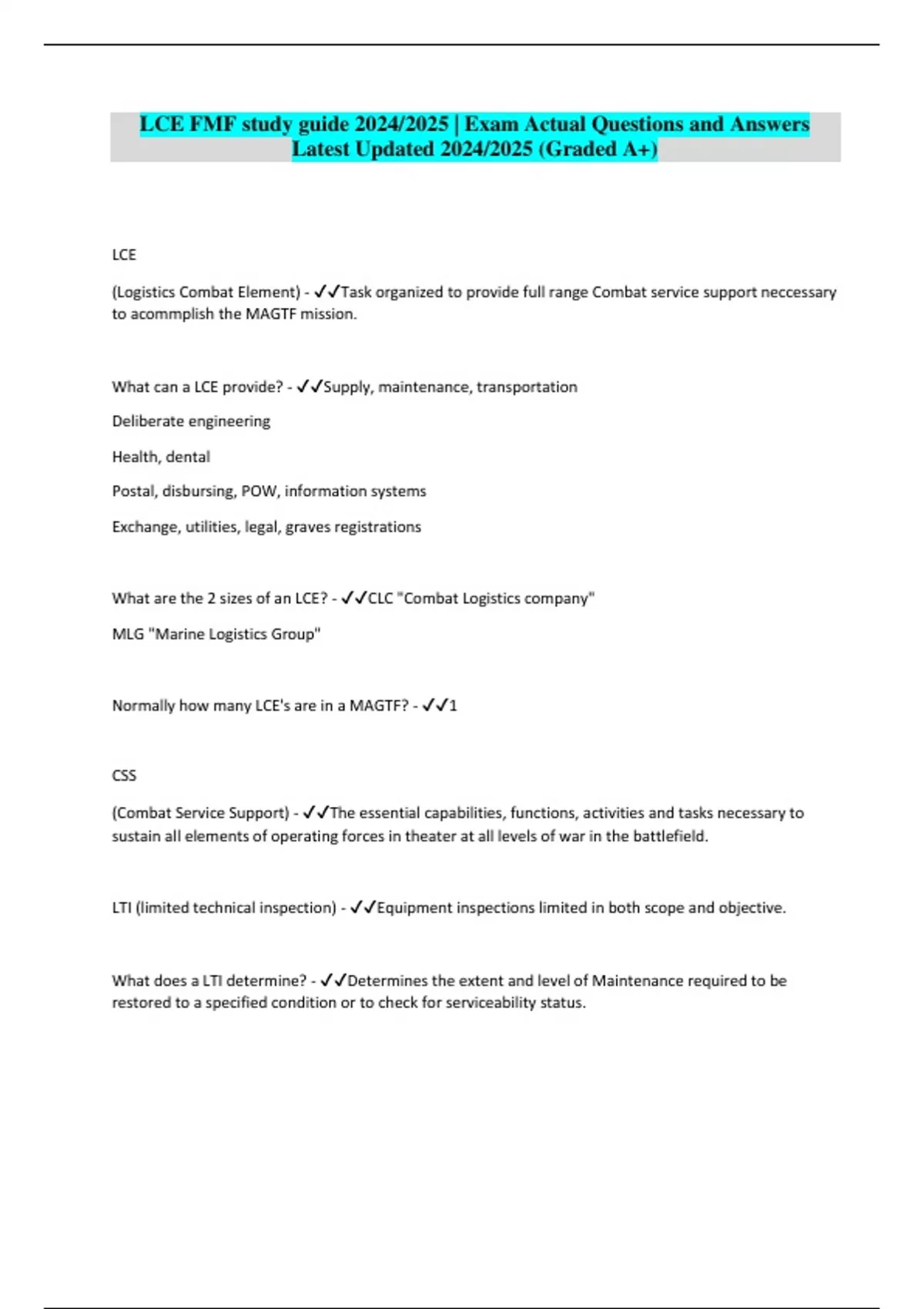 LCE FMF study guide 2024/2025 | Exam Actual Questions and Answers Latest Updated 2024/2025 (Graded A+)