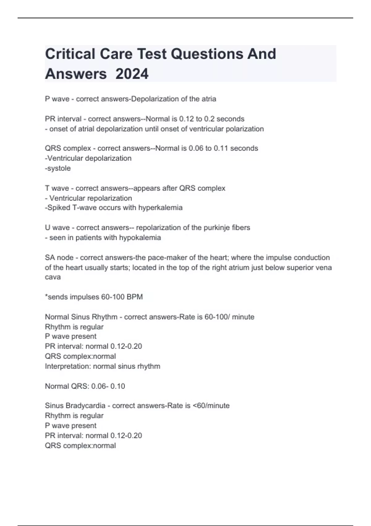 Critical Care Test Questions And Answers 2024