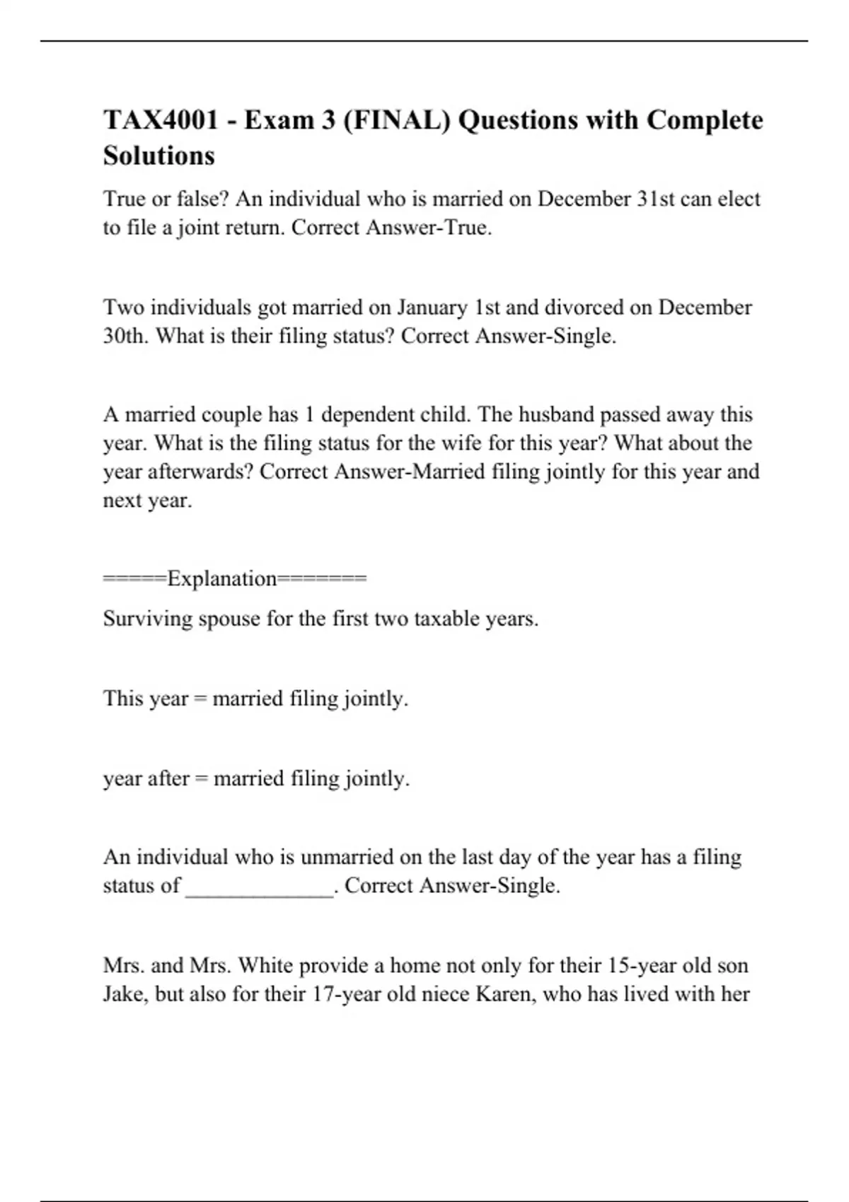 TAX4001 - Exam 3 (FINAL) Questions with Complete Solutions
