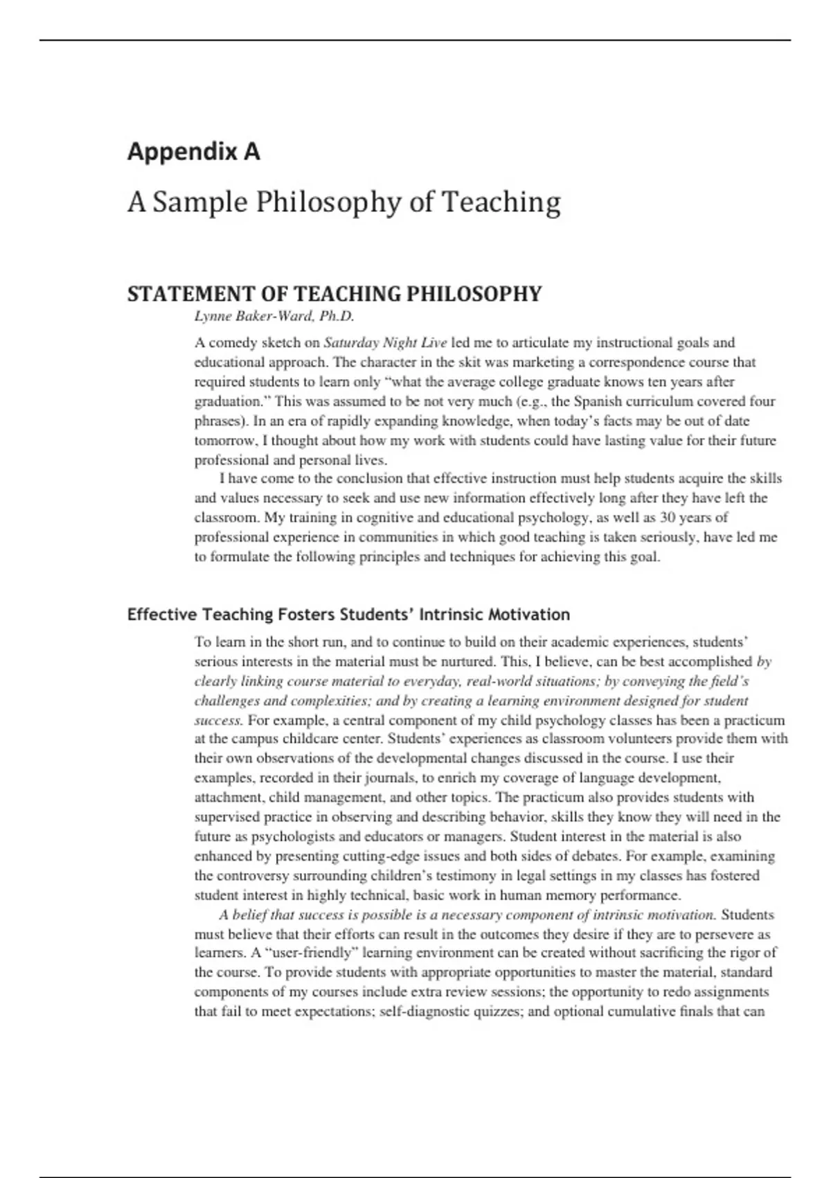 A Sample Philosophy of Teaching