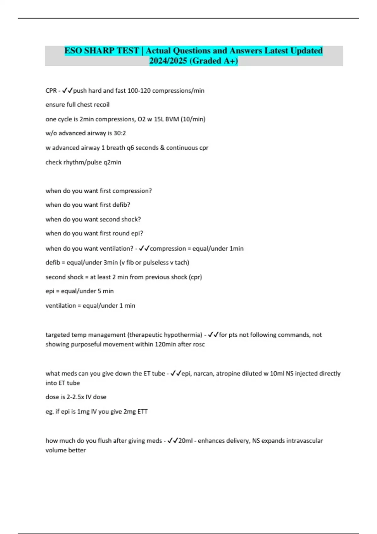 ESO SHARP TEST | Actual Questions and Answers Latest Updated 2024/2025 (Graded A+)