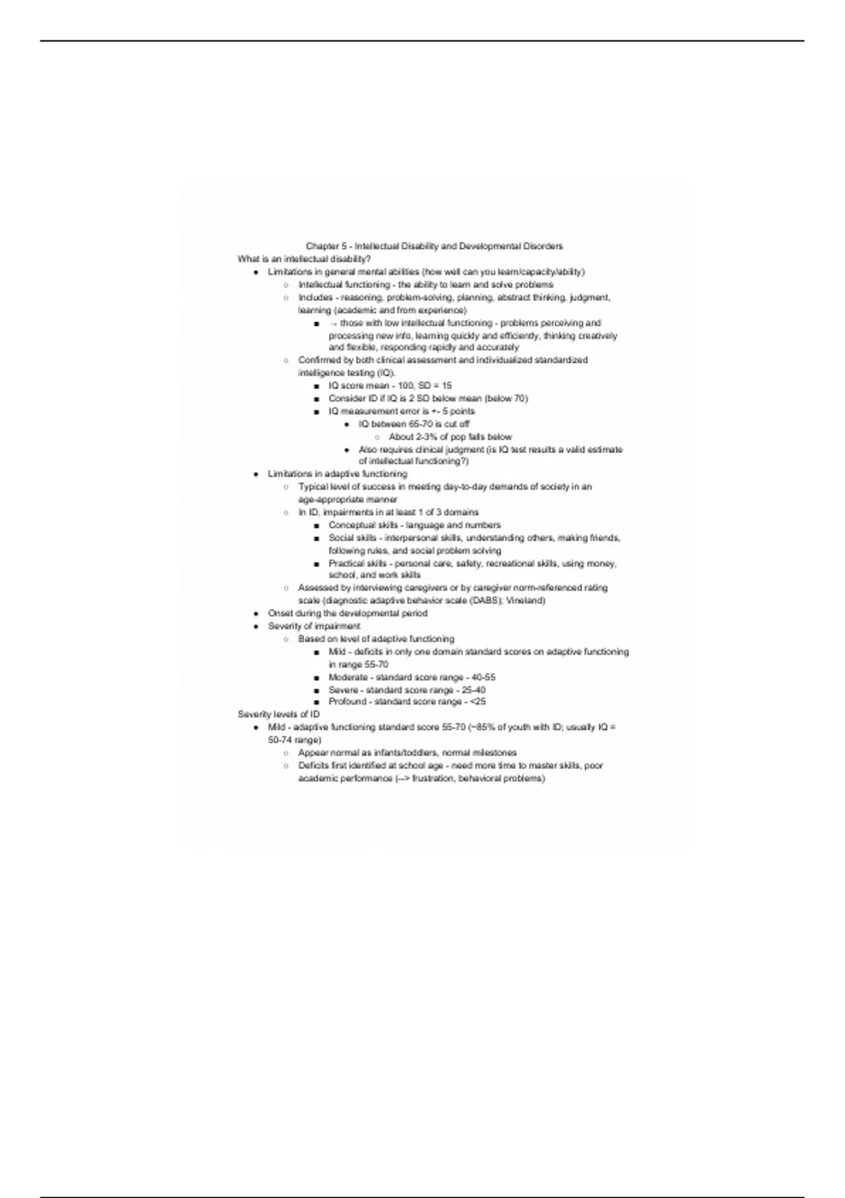This is a comprehensive and detailed note on Intellectual Disability and Developmental Disorders for Py 461. Quality stuff!!