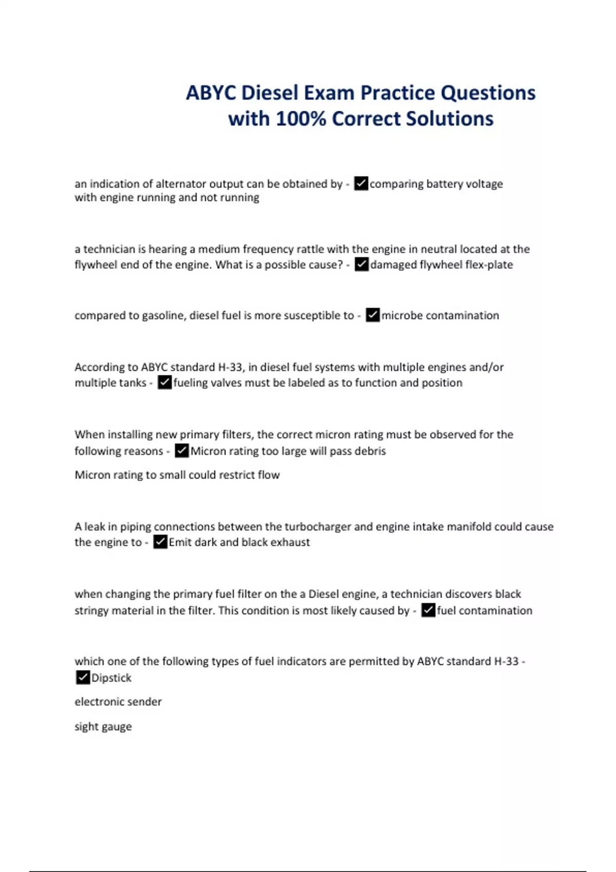 ABYC Diesel Exam Practice Questions with 100% Correct Solutions
