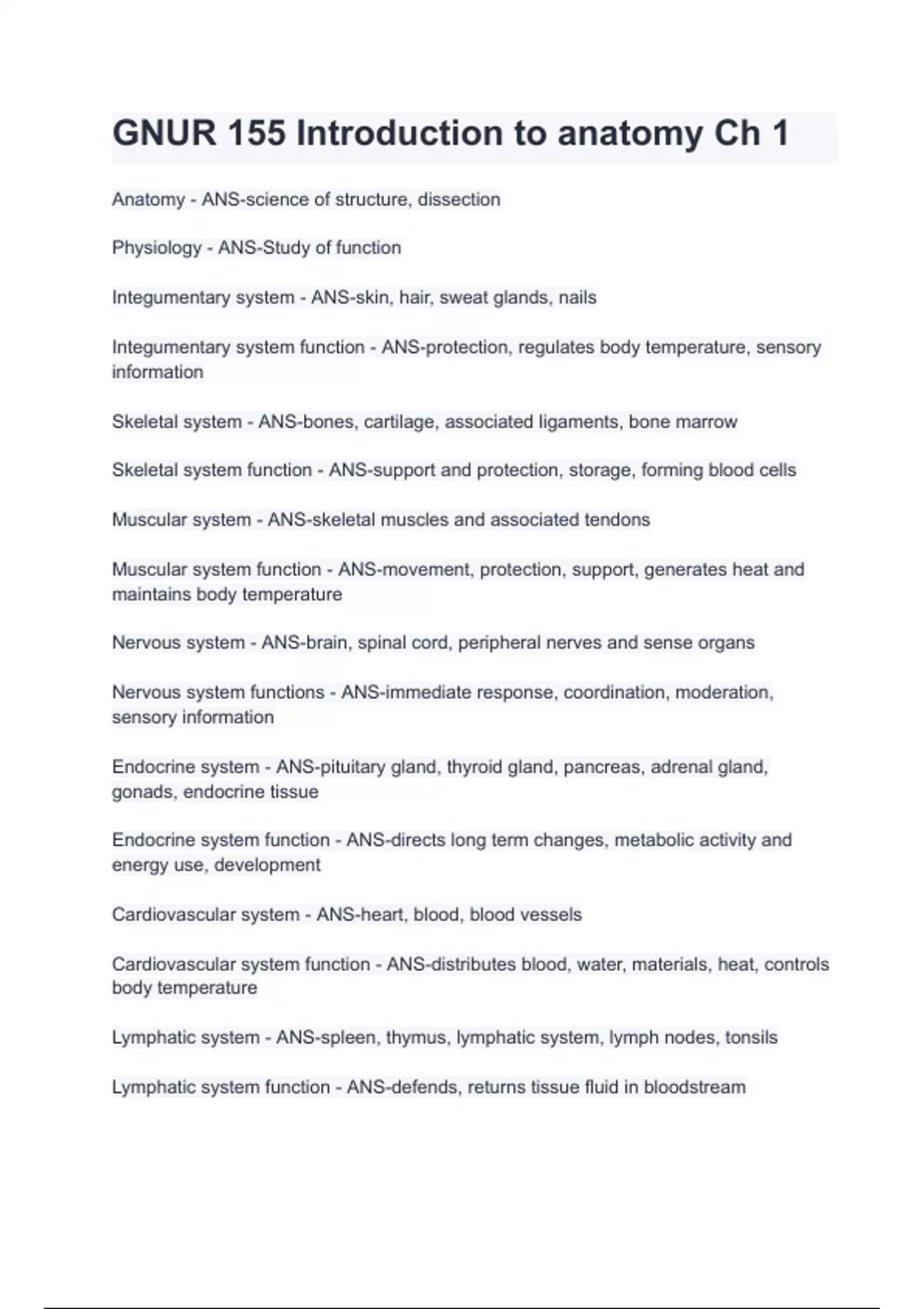 GNUR 155 Introduction to anatomy Ch 1