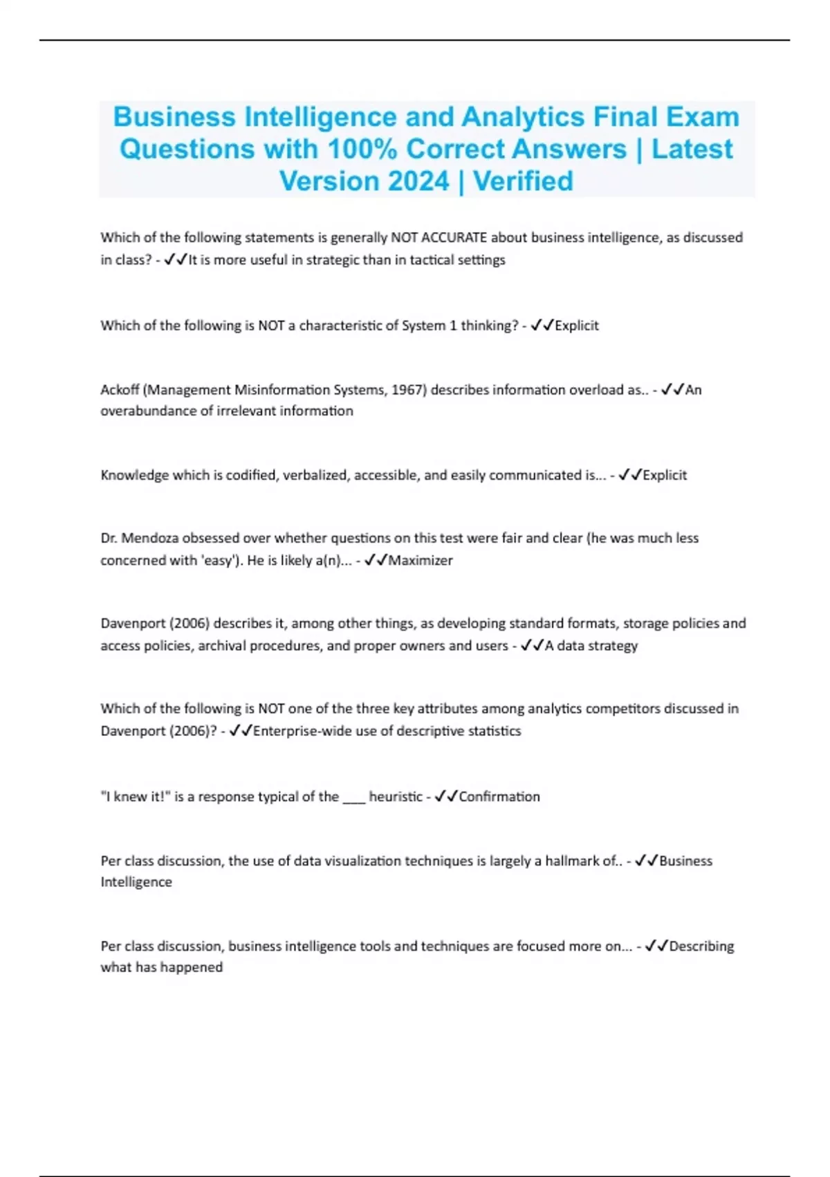 Davenport (2006)? - ✔✔Enterprise-wide use of descriptive statistics