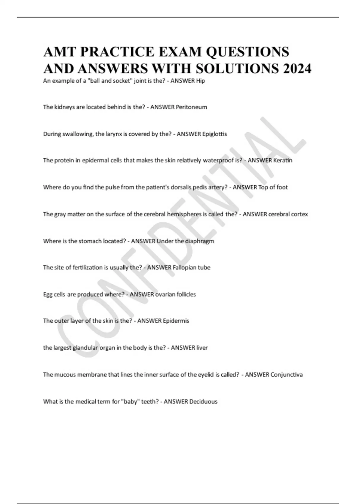 AMT PRACTICE EXAM QUESTIONS AND ANSWERS WITH SOLUTIONS 2024