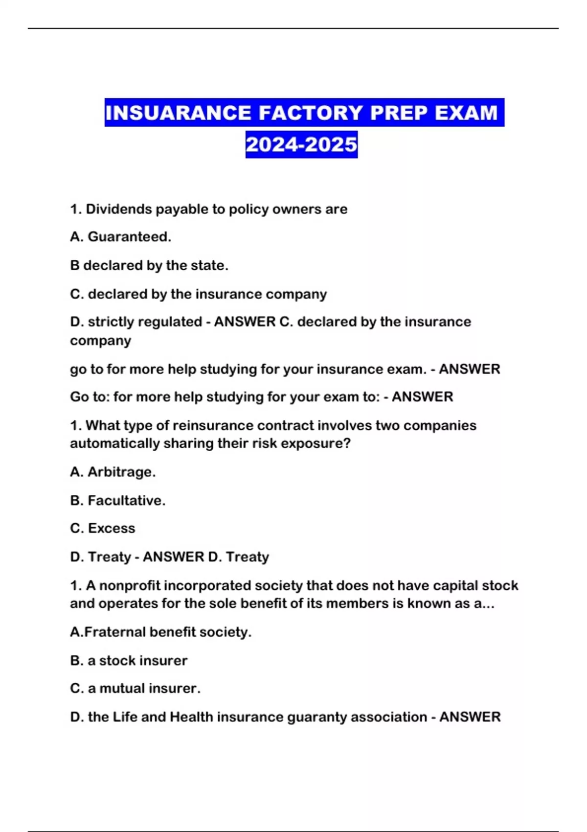 INSUARANCE FACTORY PREP EXAM ...