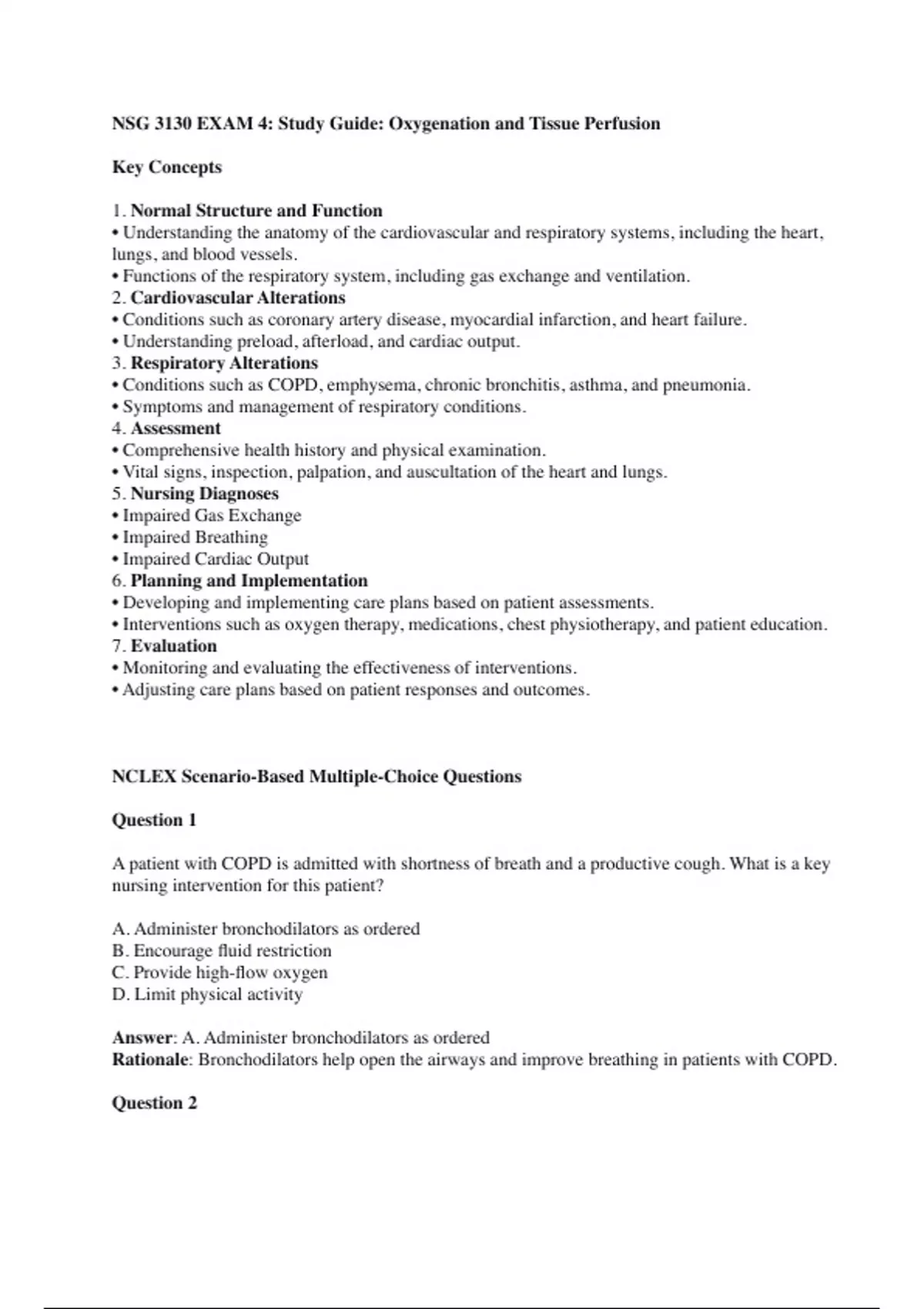 NSG 3130 Exam 4 Study guide and 50 NCLEX style questions and answers with rationals.