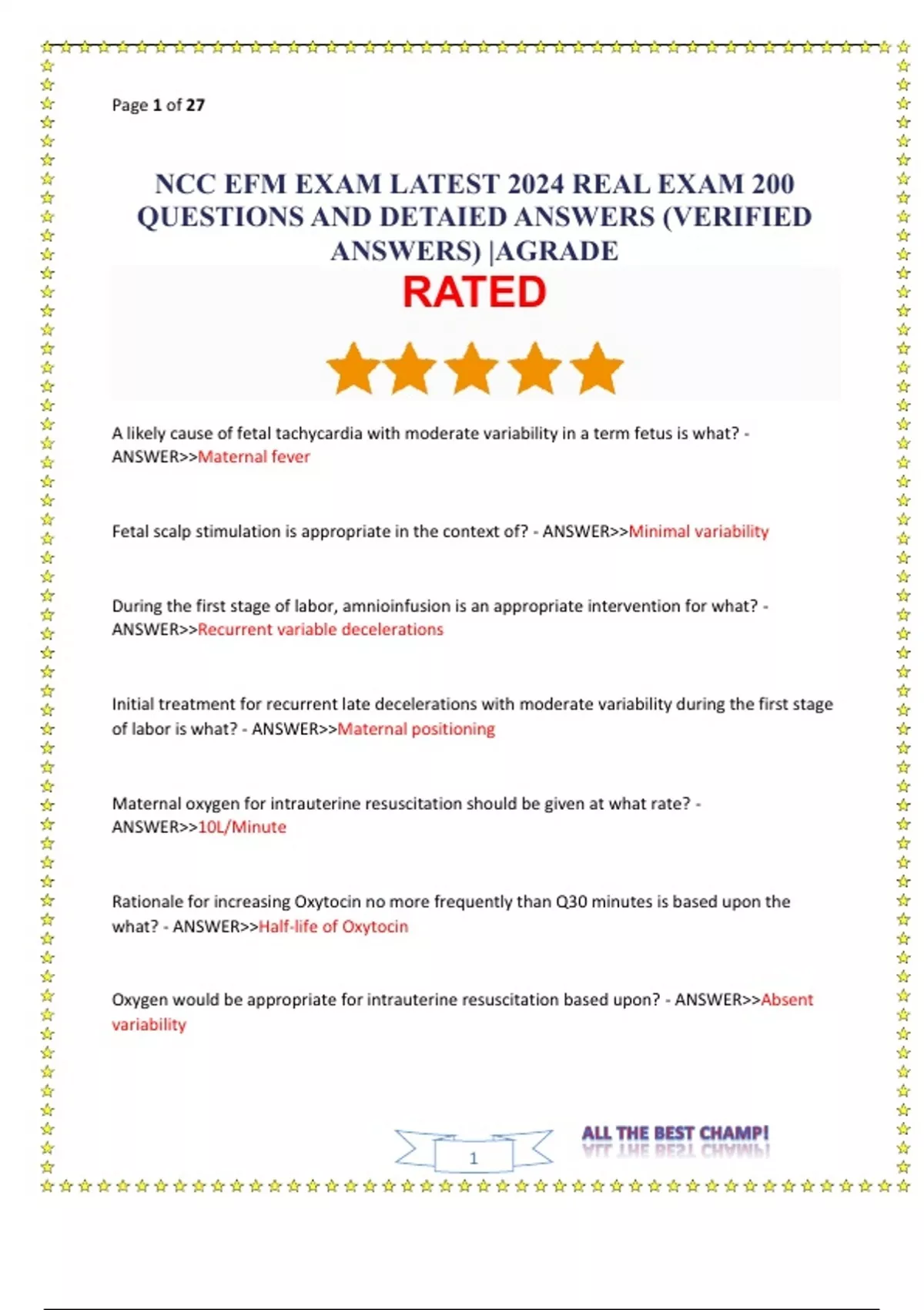 NCC EFM EXAM LATEST 2024 REAL EXAM 200 QUESTIONS AND DETAIED ANSWERS (VERIFIED ANSWERS) AGRADE