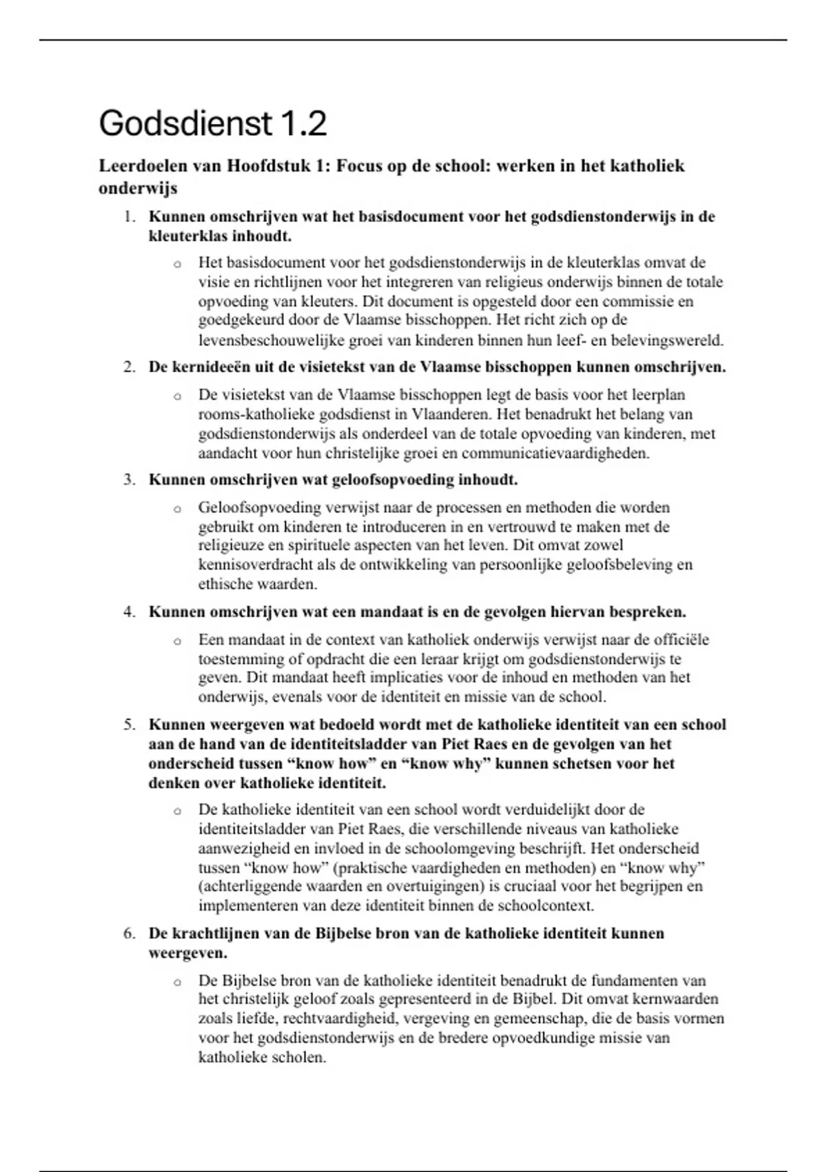 1. Kunnen omschrijven wat het basisdocument voor het godsdienstonderwijs in de