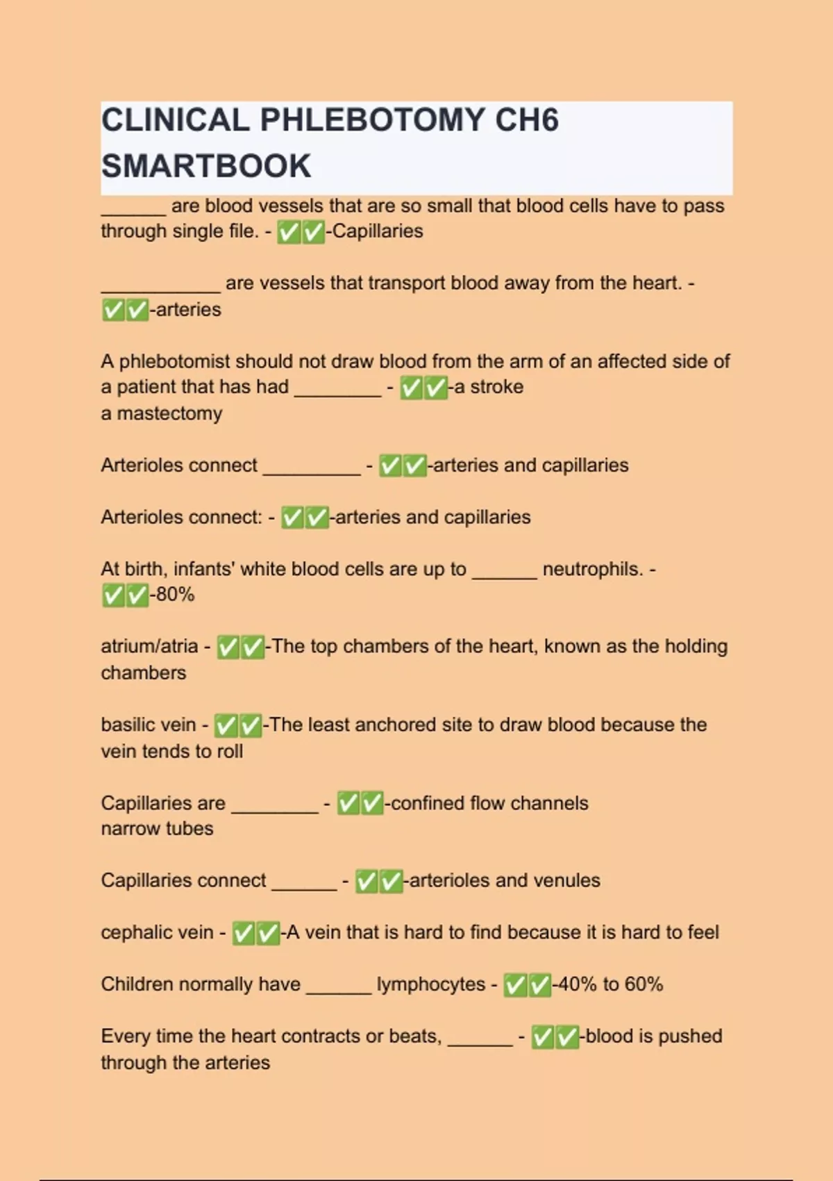 CLINICAL PHLEBOTOMY CH6 SMARTBOOK Questions with verified correct answers