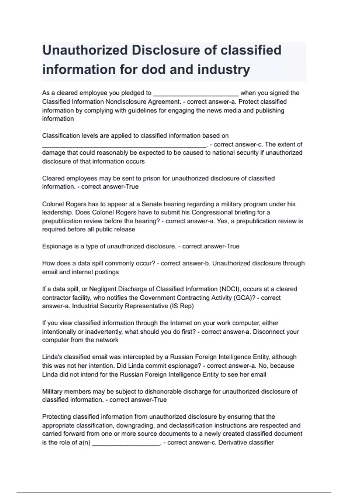 classified information. - correct answer-True
