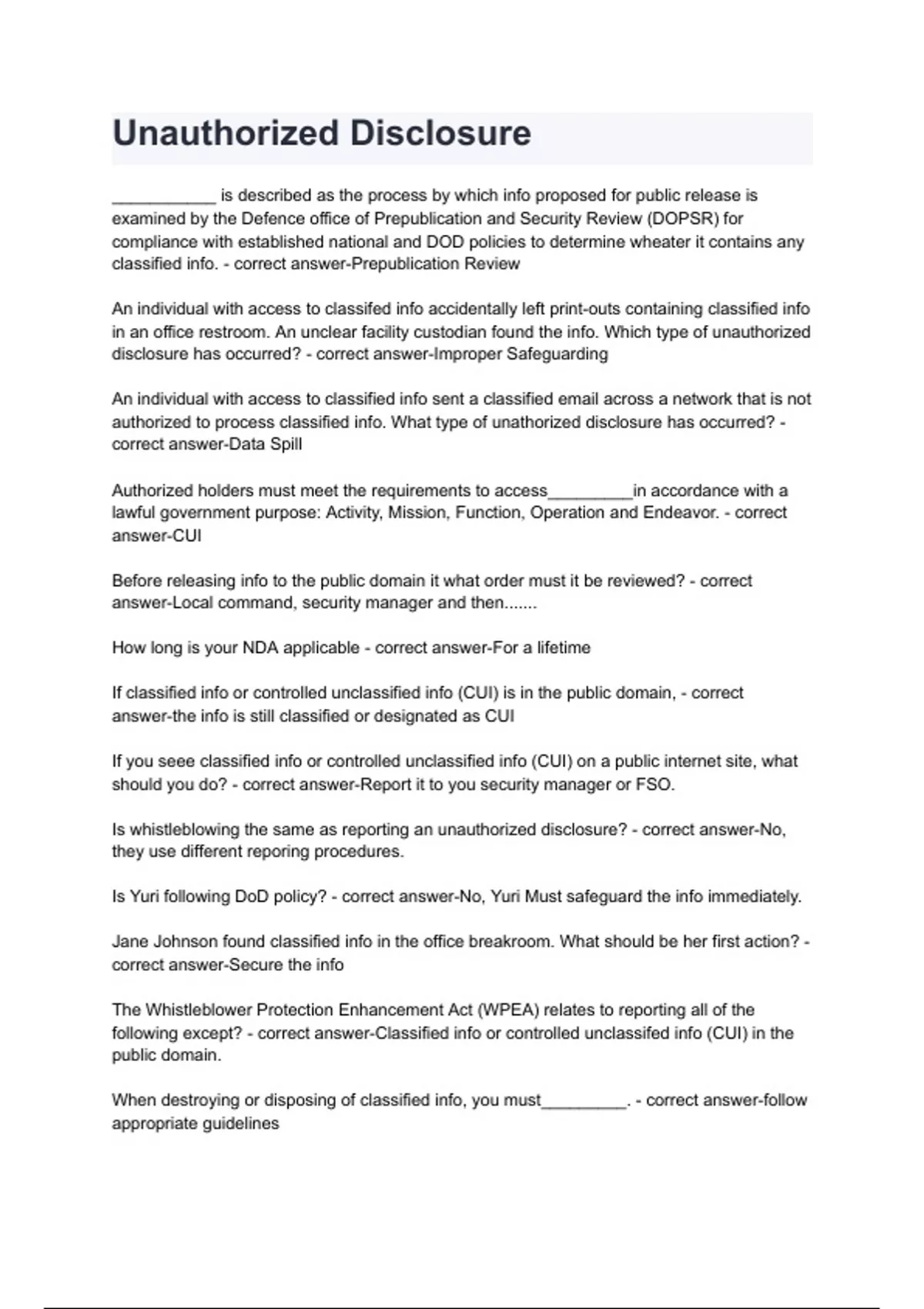 Is whistleblowing the same as reporting an unauthorized disclosure? - correct answer-No,