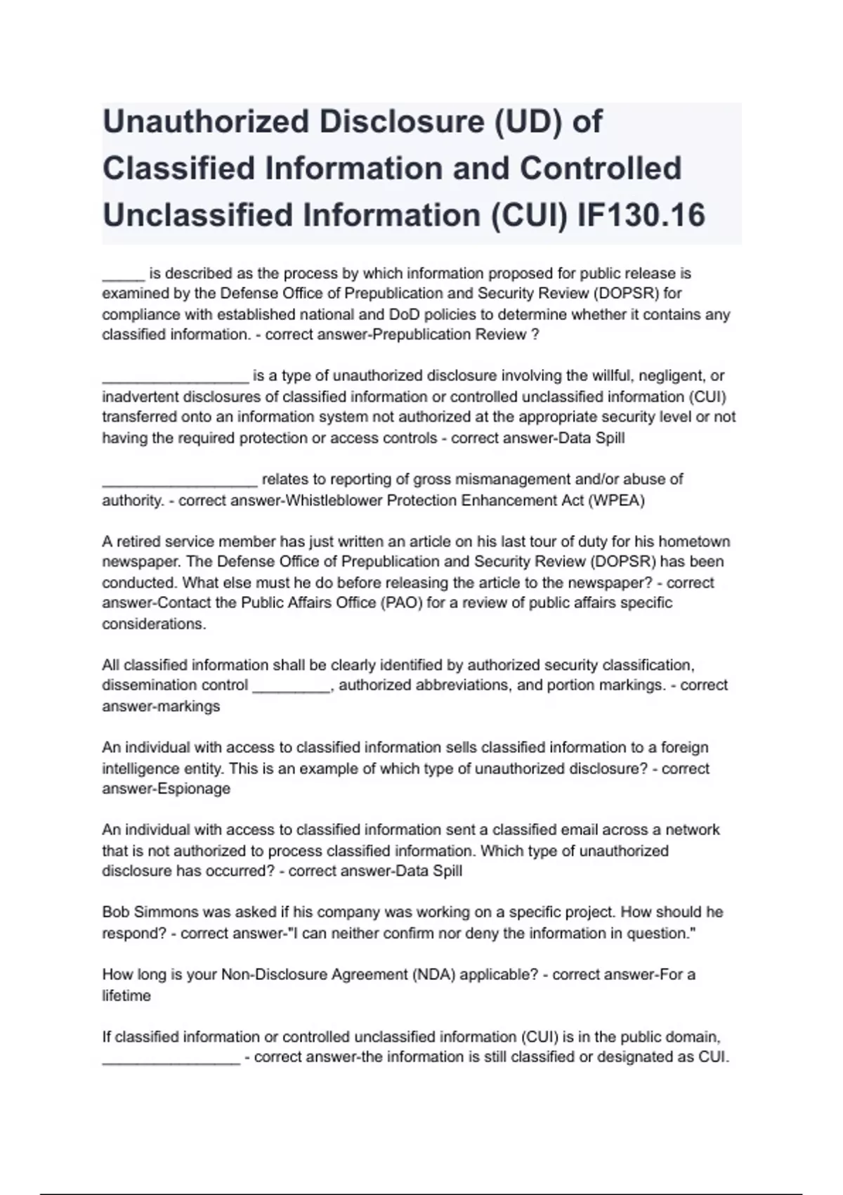 If classified information or controlled unclassified information (CUI) is in the public domain,
