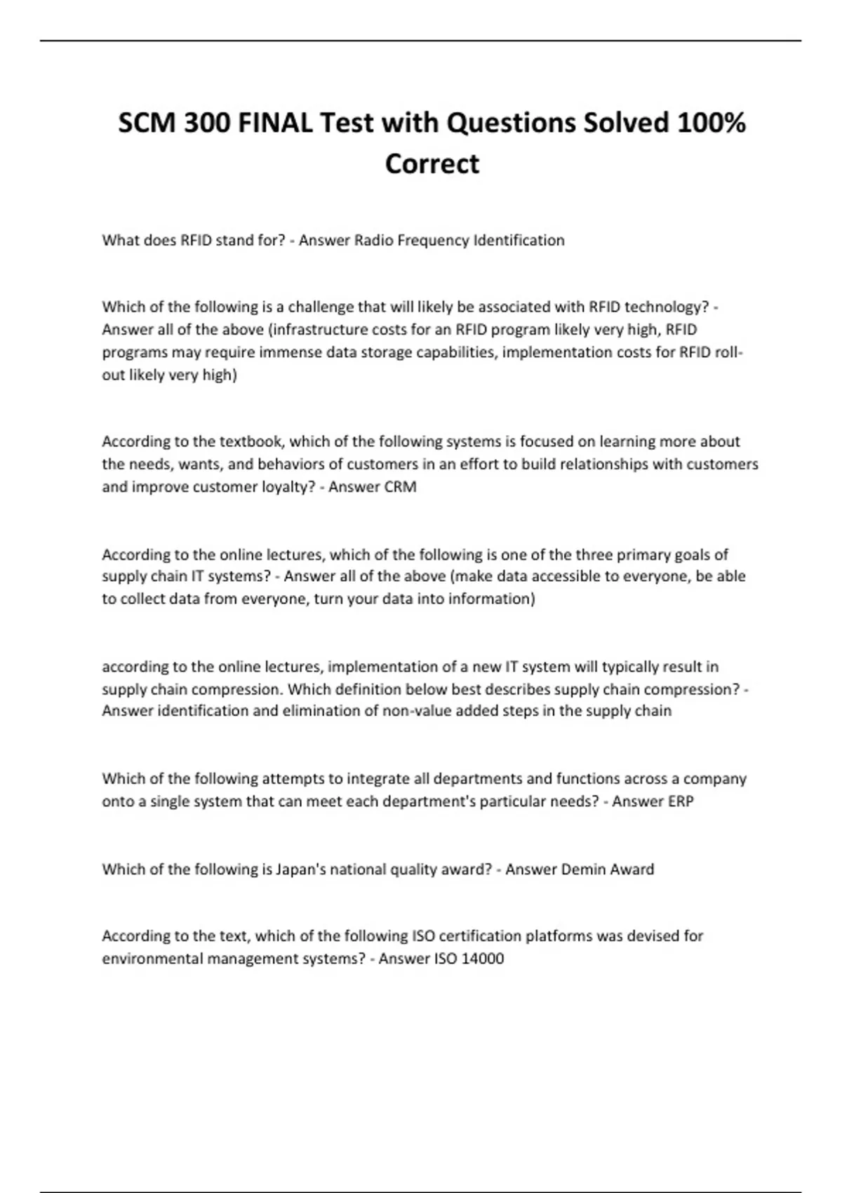 SCM 300 FINAL Test with Questions Solved 100% Correct
