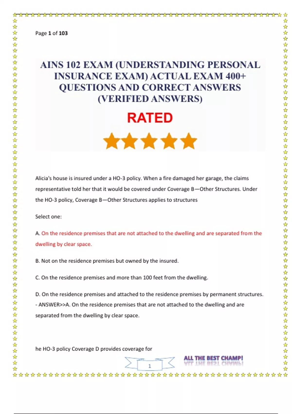 AINS 102 EXAM (UNDERSTANDING PERSONAL INSURANCE EXAM) ACTUAL EXAM 400+ QUESTIONS AND CORRECT ANSWERS (VERIFIED ANSWERS).