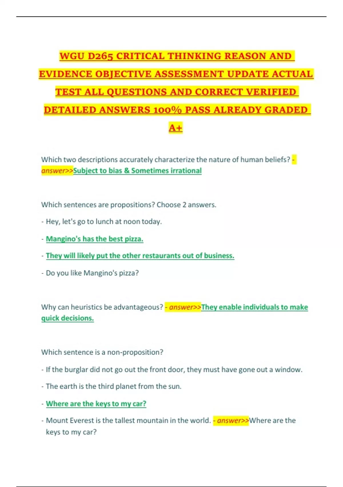 WGU D265 CRITICAL THINKING REASON AND EVIDENCE OBJECTIVE ASSESSMENT UPDATE ACTUAL TEST ALL QUESTIONS AND CORRECT VERIFIED DETAILED ANSWERS 100% PASS ALREADY GRADED A+