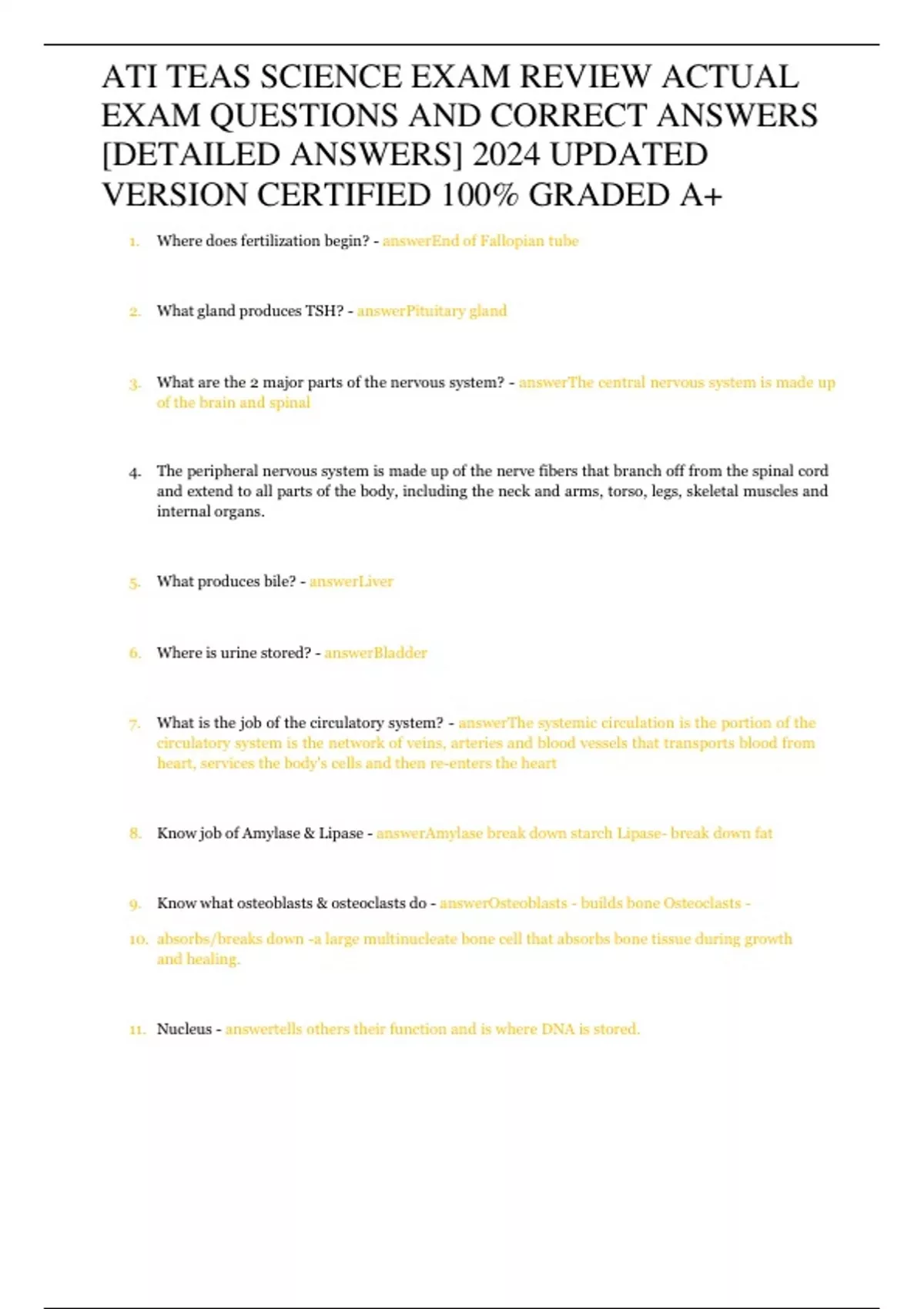 ATI TEAS SCIENCE EXAM REVIEW ACTUAL EXAM QUESTIONS AND CORRECT ANSWERS [DETAILED ANSWERS] 2024 UPDATED VERSION CERTIFIED 100% GRADED A+