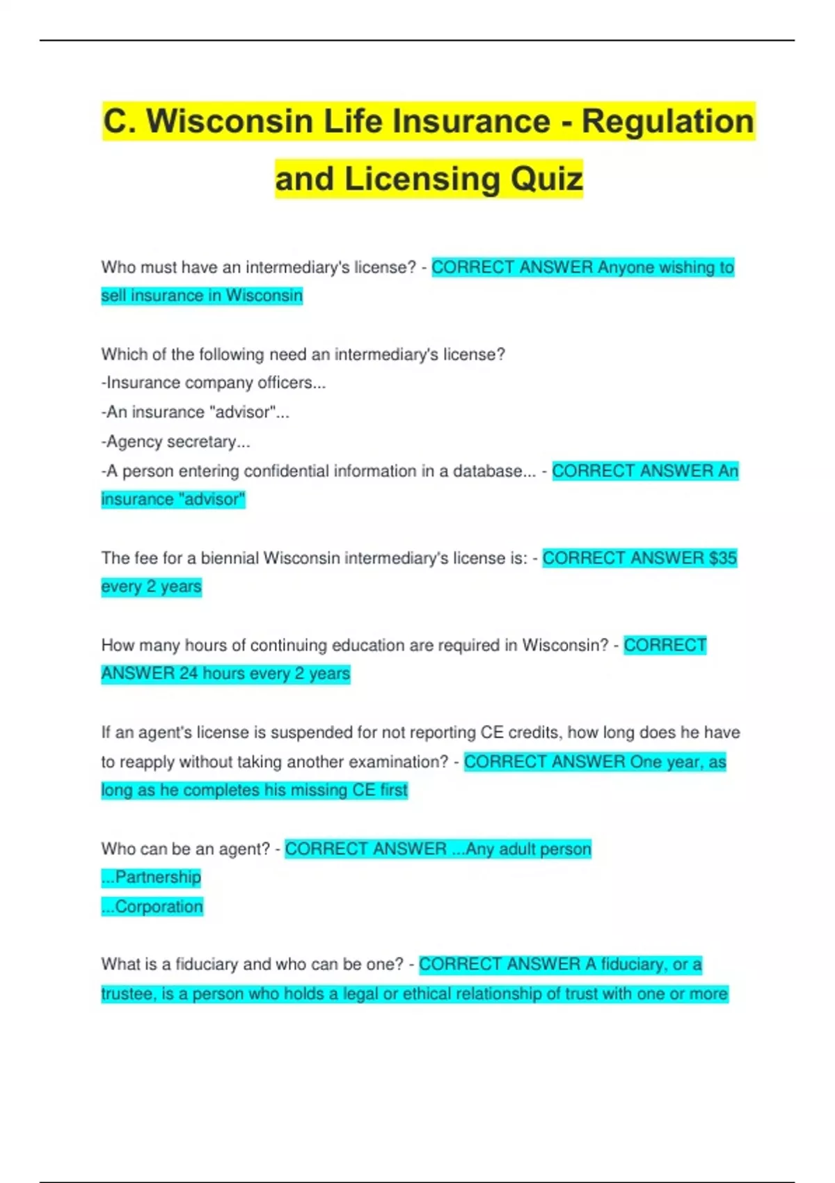 C. Wisconsin Life Insurance - Regulation and Licensing Questions with Verified Answers