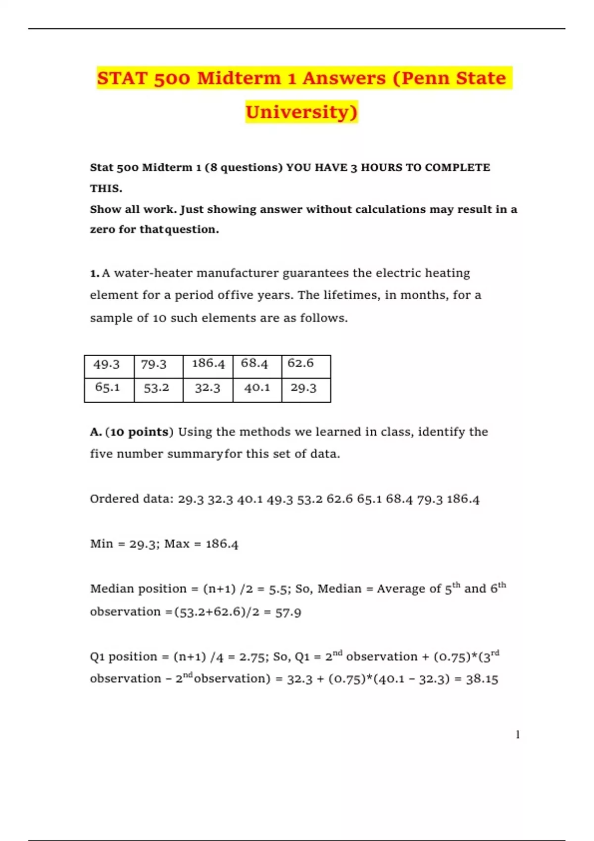 STAT 500 Midterm 1 Answers (Penn State University)