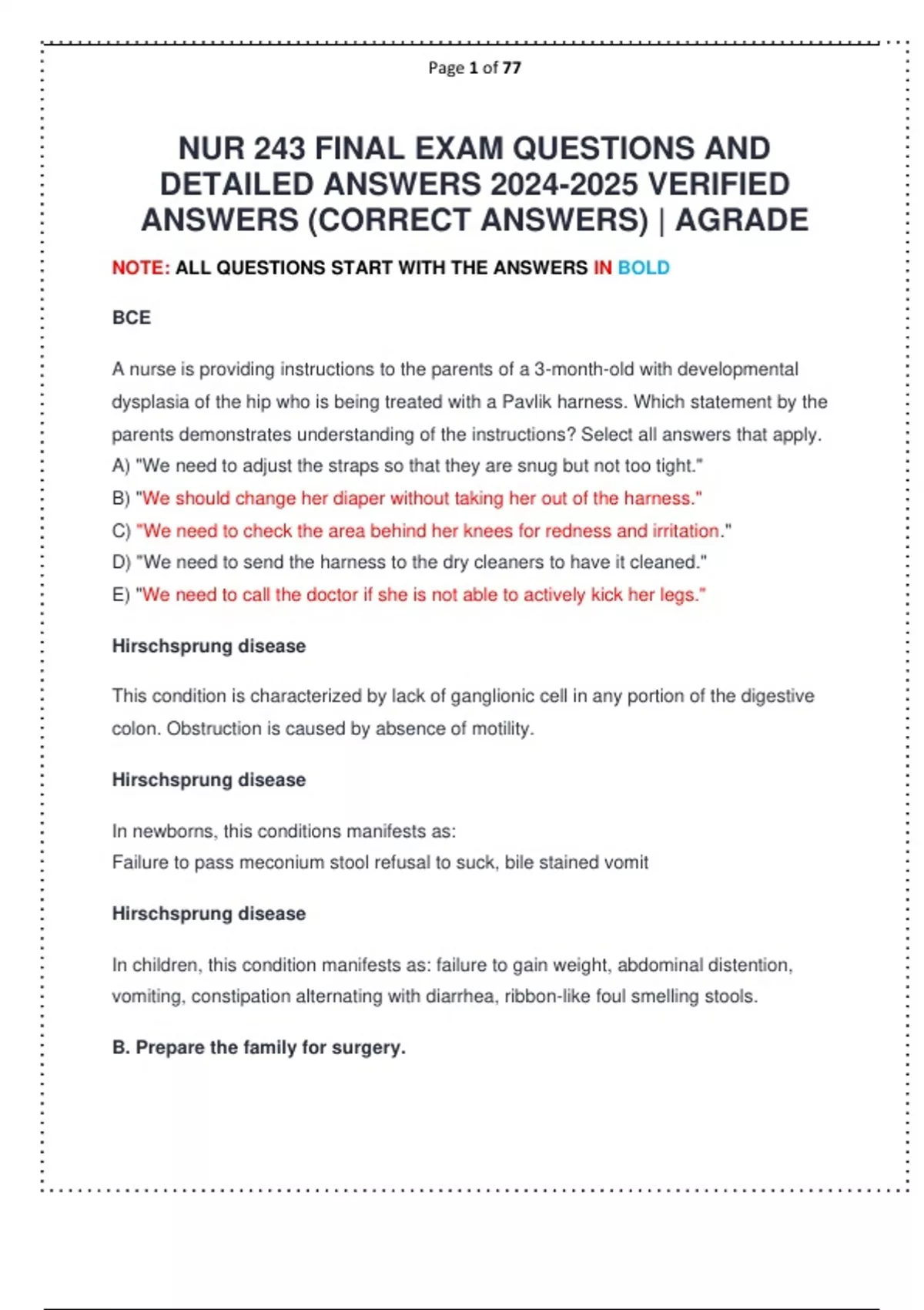NUR 243 FINAL EXAM QUESTIONS AND DETAILED ANSWERS VERIFIED ANSWERS (CORRECT ANSWERS) | AGRADE