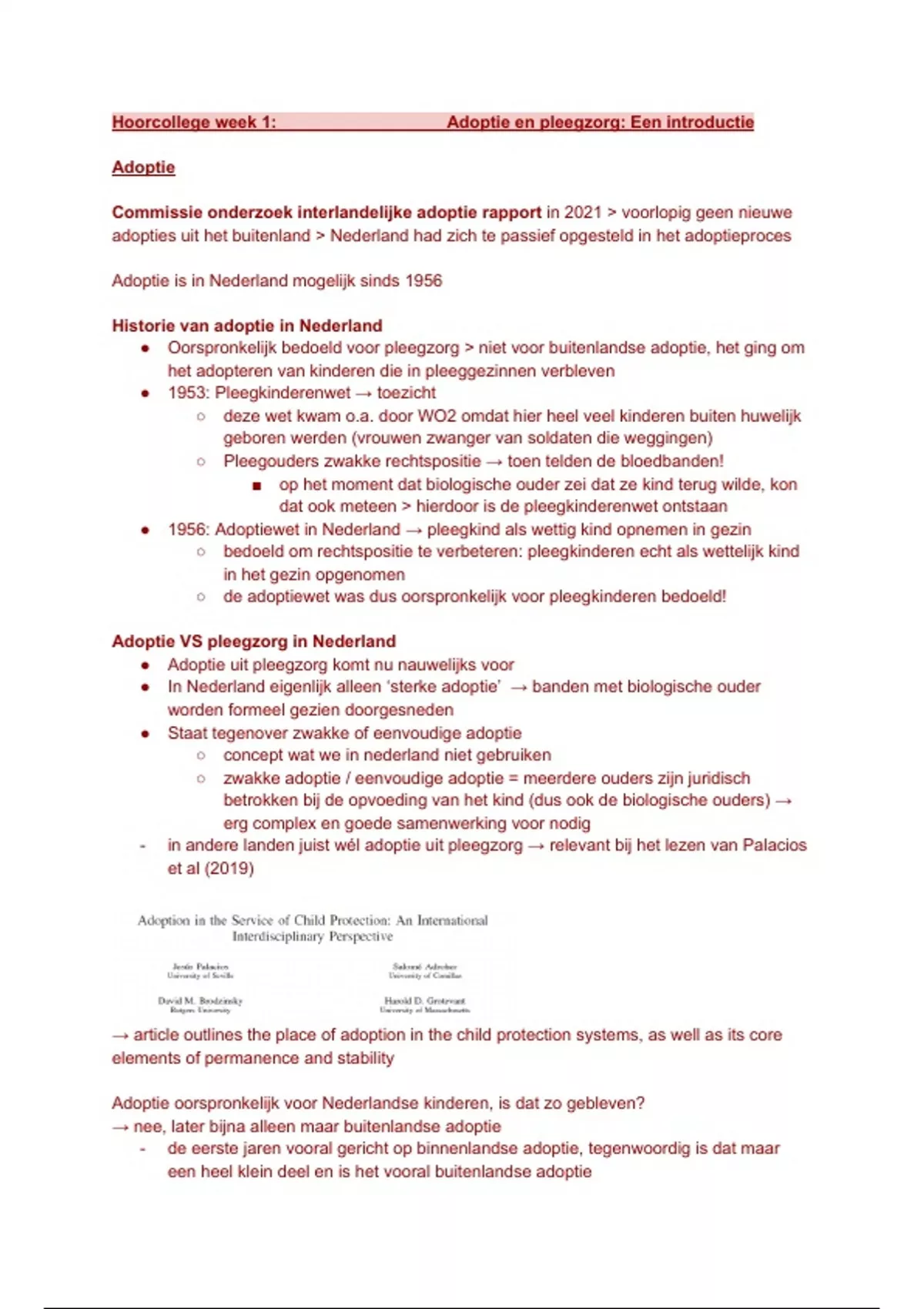 - in andere landen juist wél adoptie uit pleegzorg → relevant bij het lezen van Palacios