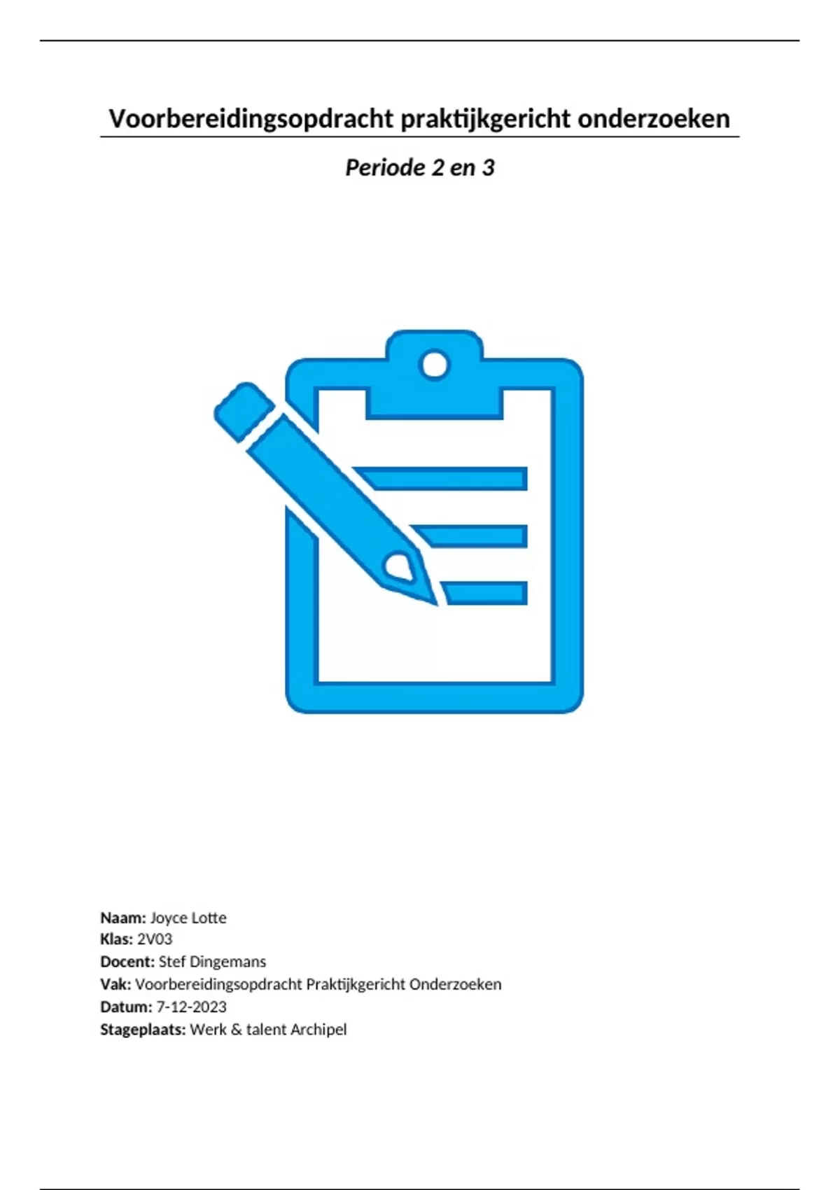 Vak: Voorbereidingsopdracht Praktijkgericht Onderzoeken