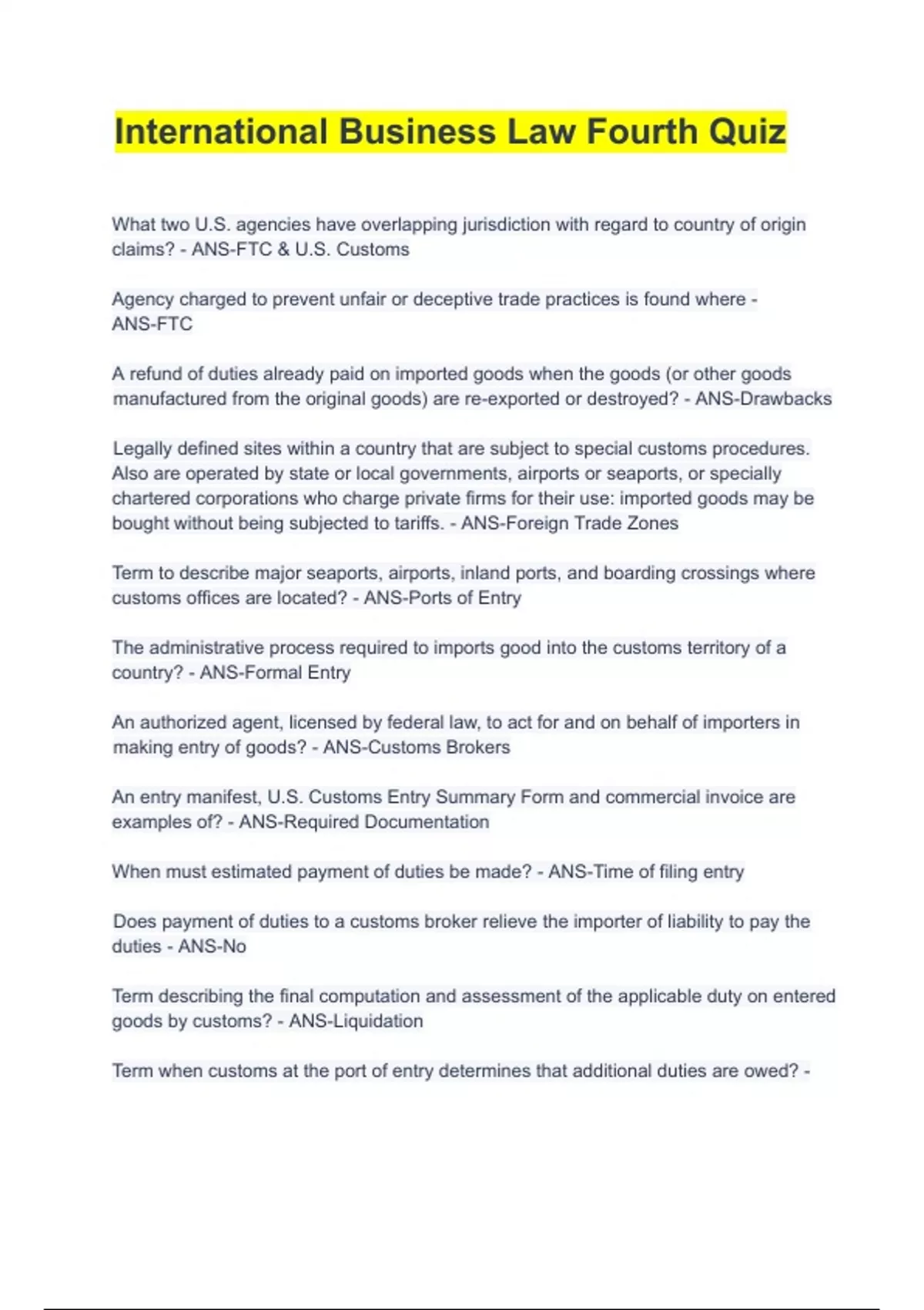 International Business Law Fourth Quiz