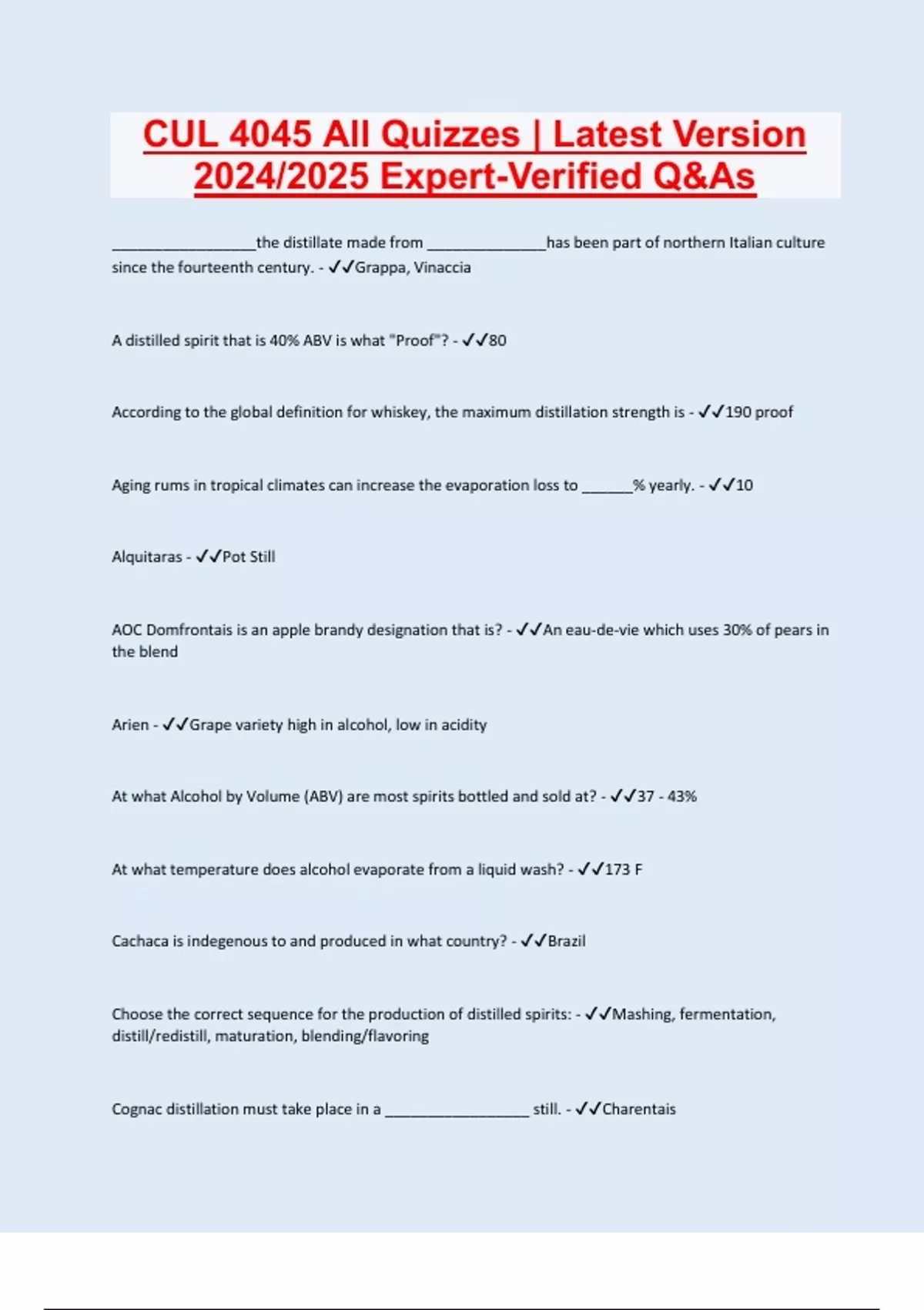 CUL 4045 All Quizzes | Latest Version 2024/2025 Expert-Verified Q&As