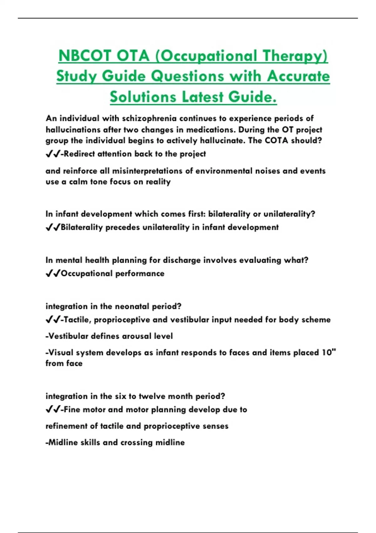 NBCOT OTA (Occupational Therapy) Study Guide Questions with Accurate Solutions Latest Guide.