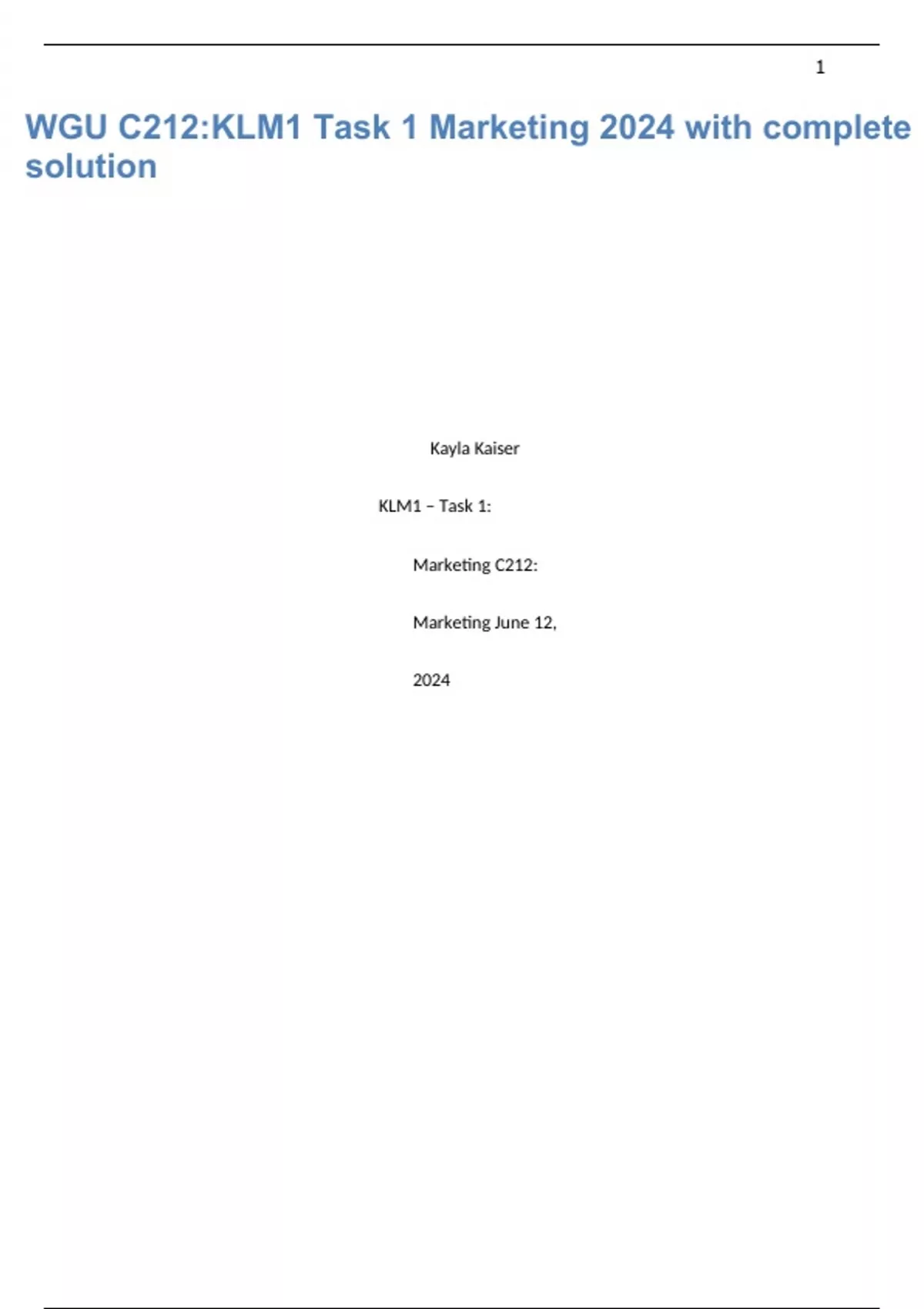 WGU C212:KLM1 Task 1 Marketing 2024 with complete